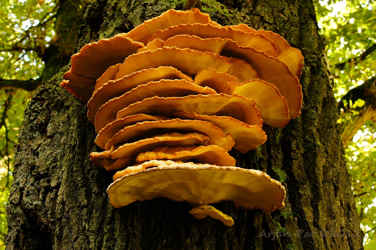 Nadat de bui overgetrokken was kwam ik erachter, dat er een heel grote zwam zich tegoed deed aan de achterkant van deze reus.