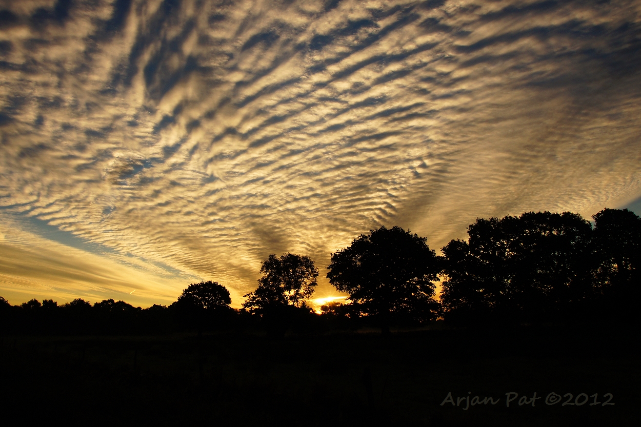 Leek het zo'n mooie dag te worden. Eerst hadden we nog een helder blauwe lucht met (die verdraaide) cirrocumulus wolken. Die wolken hebben elkaar blijkbaar opgezocht en vormen nu één groot wolkendek.