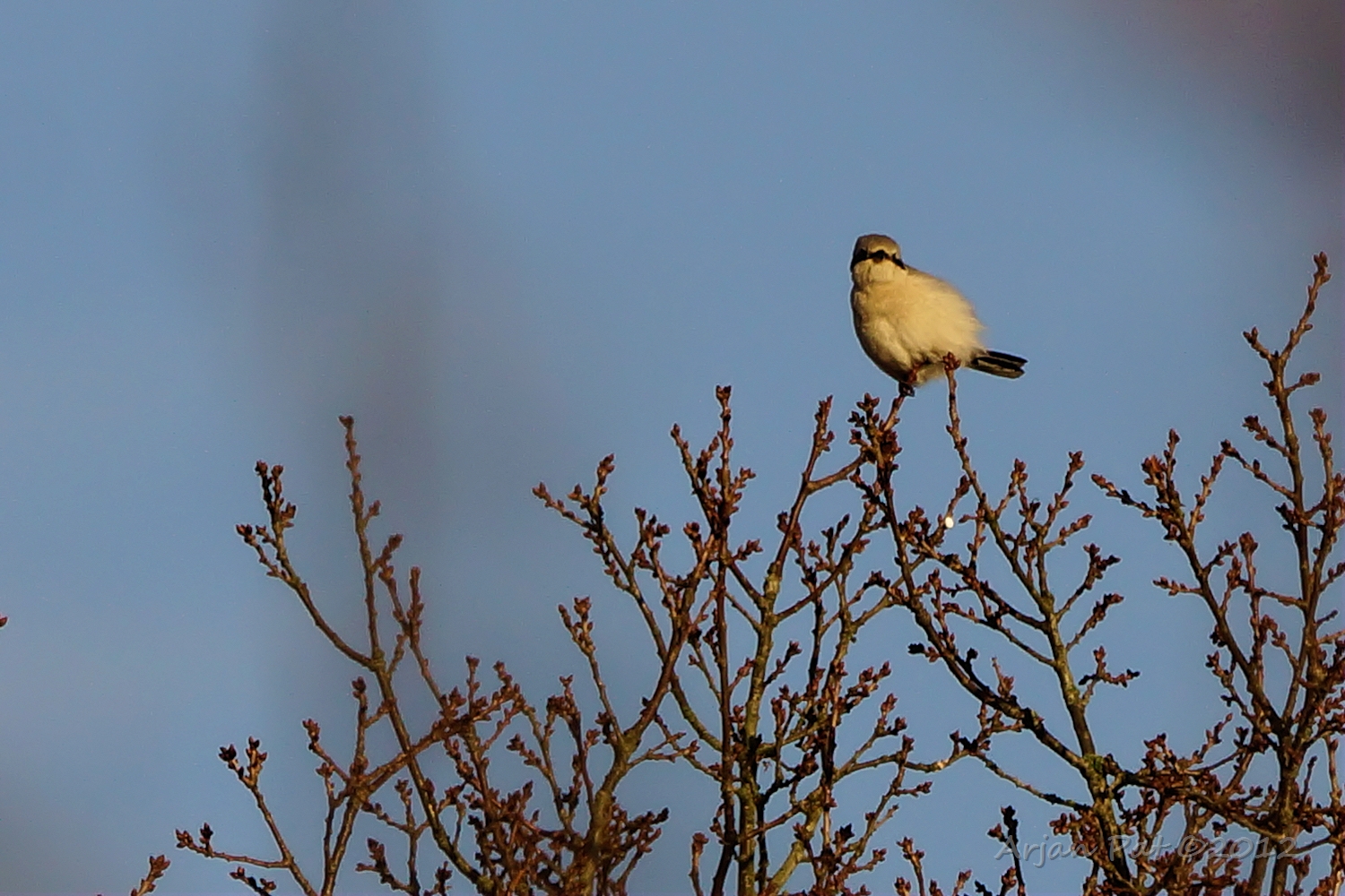 Hij is er weer; de klapekster. De eerste keer dat ik hem zie na de zomerstop. Nog erg schuw, want na een paar foto's te hebben genomen vanuit de verte vloog ie al weg en heb ik hem nooit weer gezien die dag.