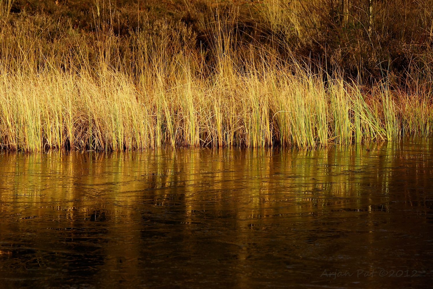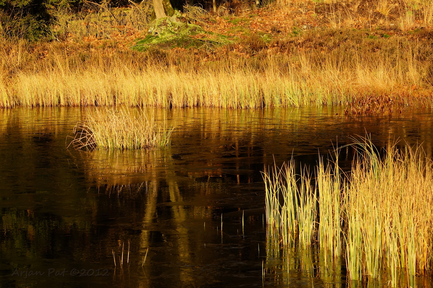 Het was al laat dat ik aan de wandeling begon, maar een dun laagje ijs was nog wel aanwezig op deze ven. Ook het blad op het bospad, dat in de schaduw lag kraakte door z'n bevroren toestand.