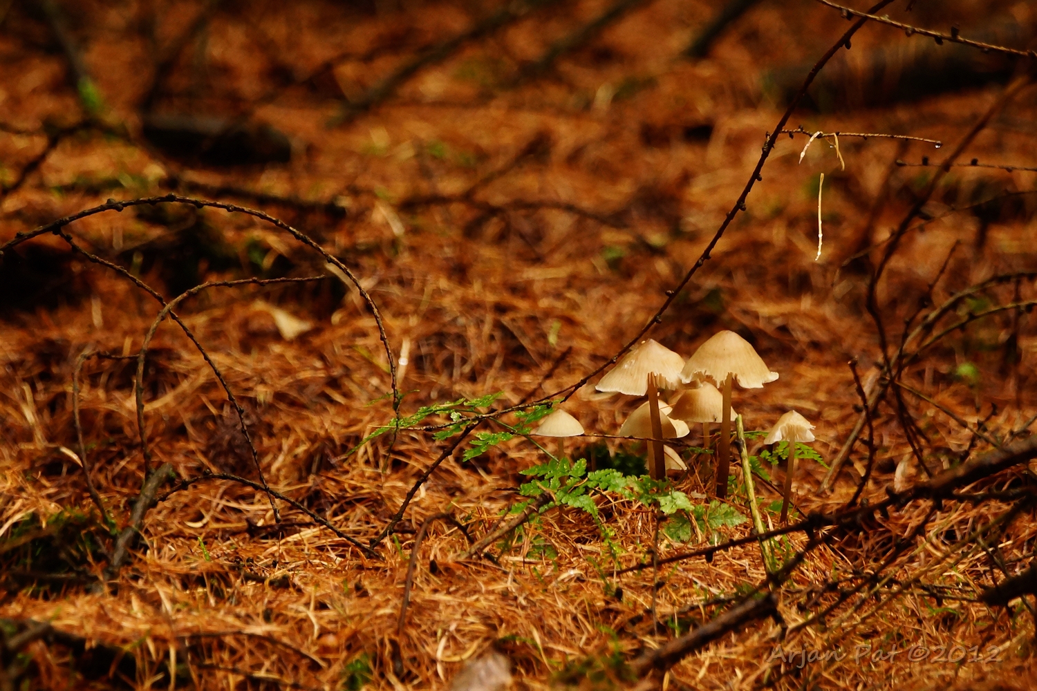 Dit tweetal had mijn toestel blijkbaar niet gehoord en liepen iets verder door. Ze bleven op zo'n 20 tot 25 meter van mij staan waarschijnlijk omdat de andere reeën ook bleven staan. Hadden ze dat niet gedaan, dan waren waarschijnlijk vlak langs mij het bos is gelopen. Ik zat trouwens half in de lage takken van een dennenboompje verscholen (vandaar dat sommige foto's een groene waas aan de zijkant hebben van de takjes, die voor de cameralens hingen.