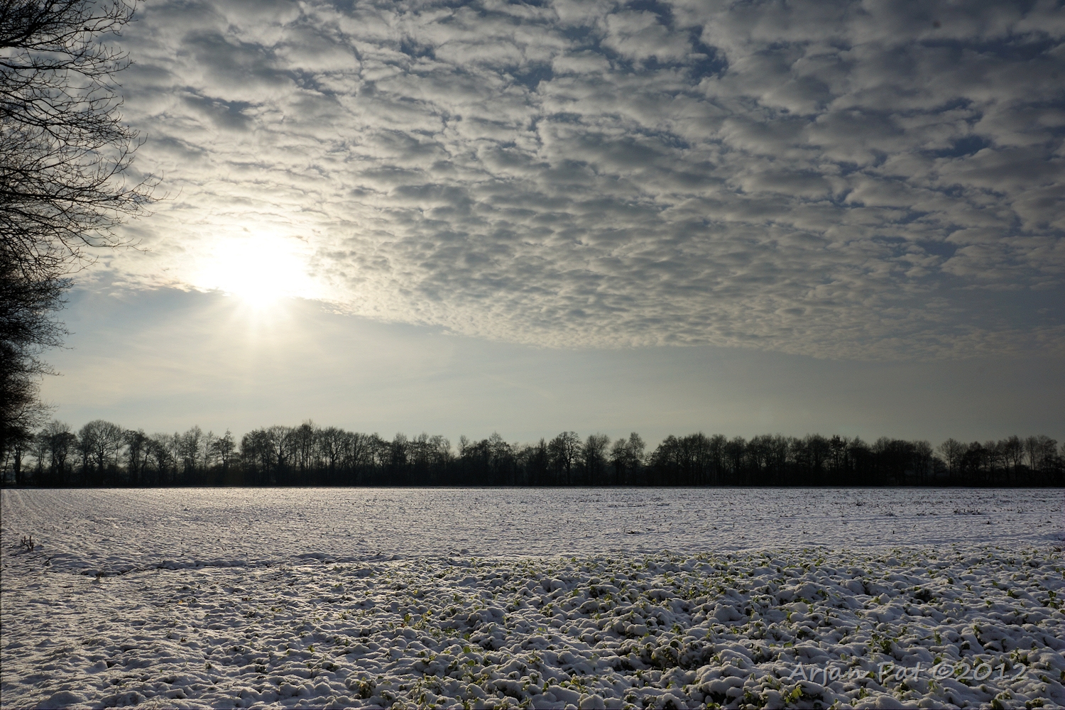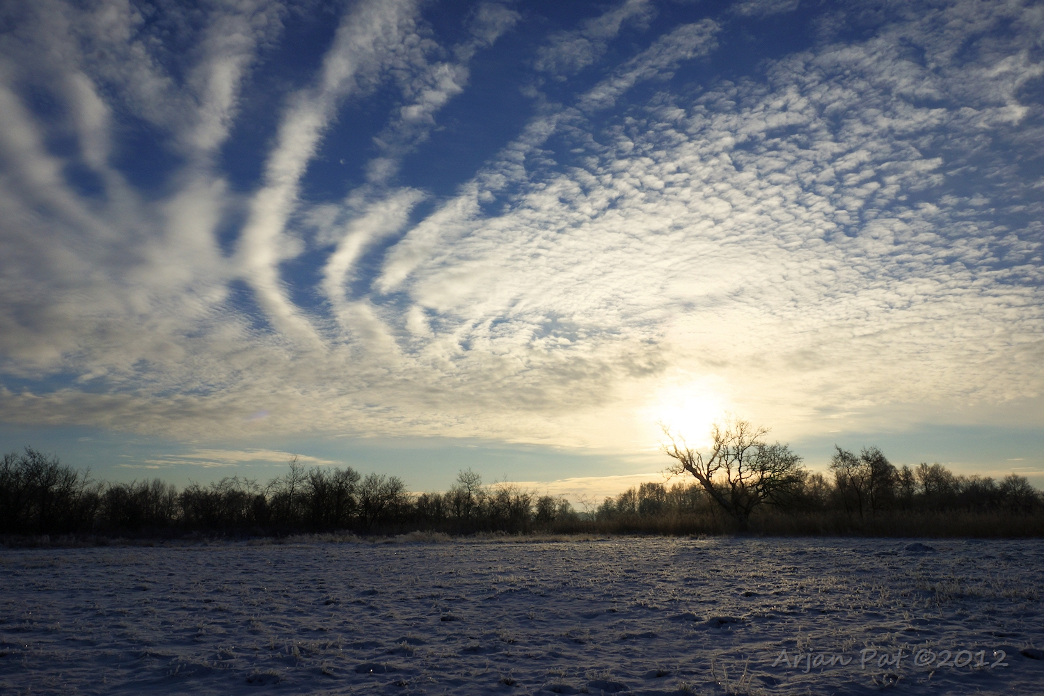 De wandeling begon koud: -8ºC, maar er stond 's ochtends weinig tot geen wind en de zon scheen zo'n beetje de gehele dag. Later in de middag begon de wind wat toe te nemen, waardoor de handschoenen aan en muts opgezet moest worden.