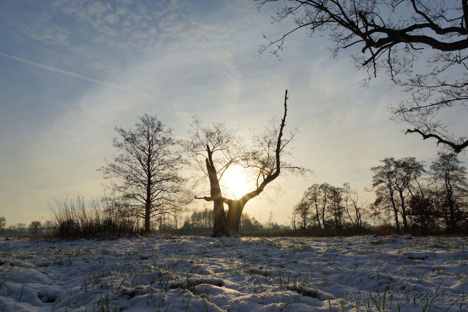De wereld niet boven de sneeuwlaag ziet er apart en grillig uit, vooral met tegenlicht.