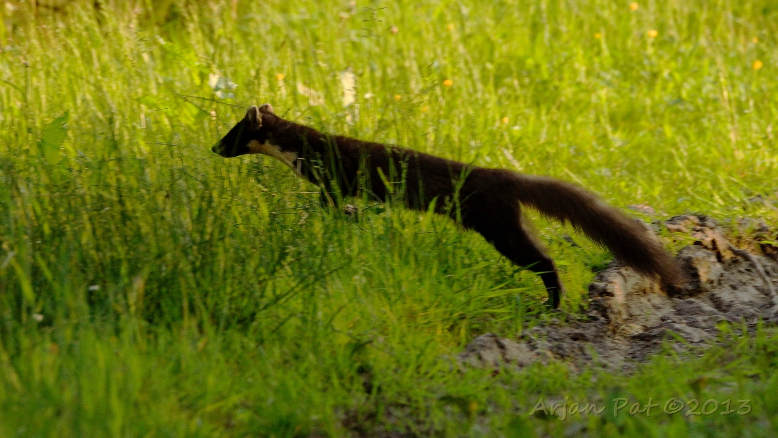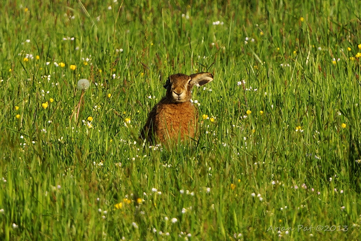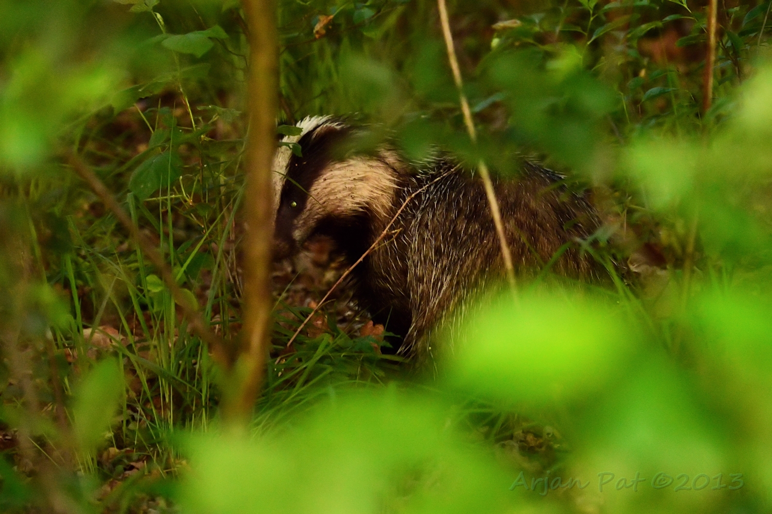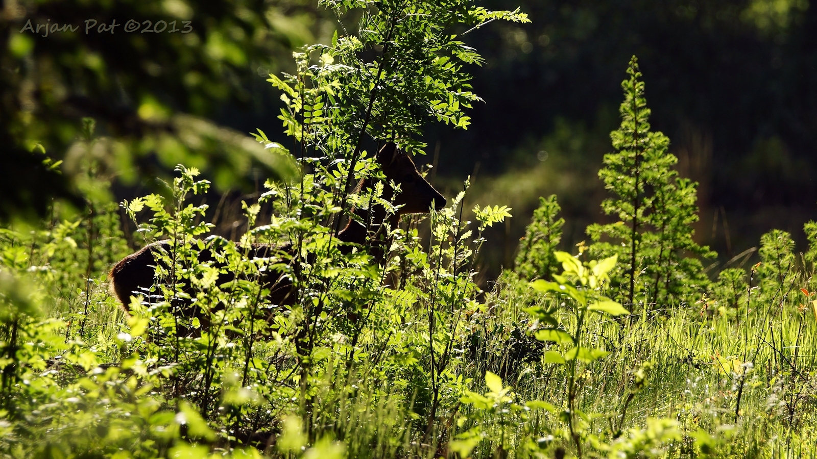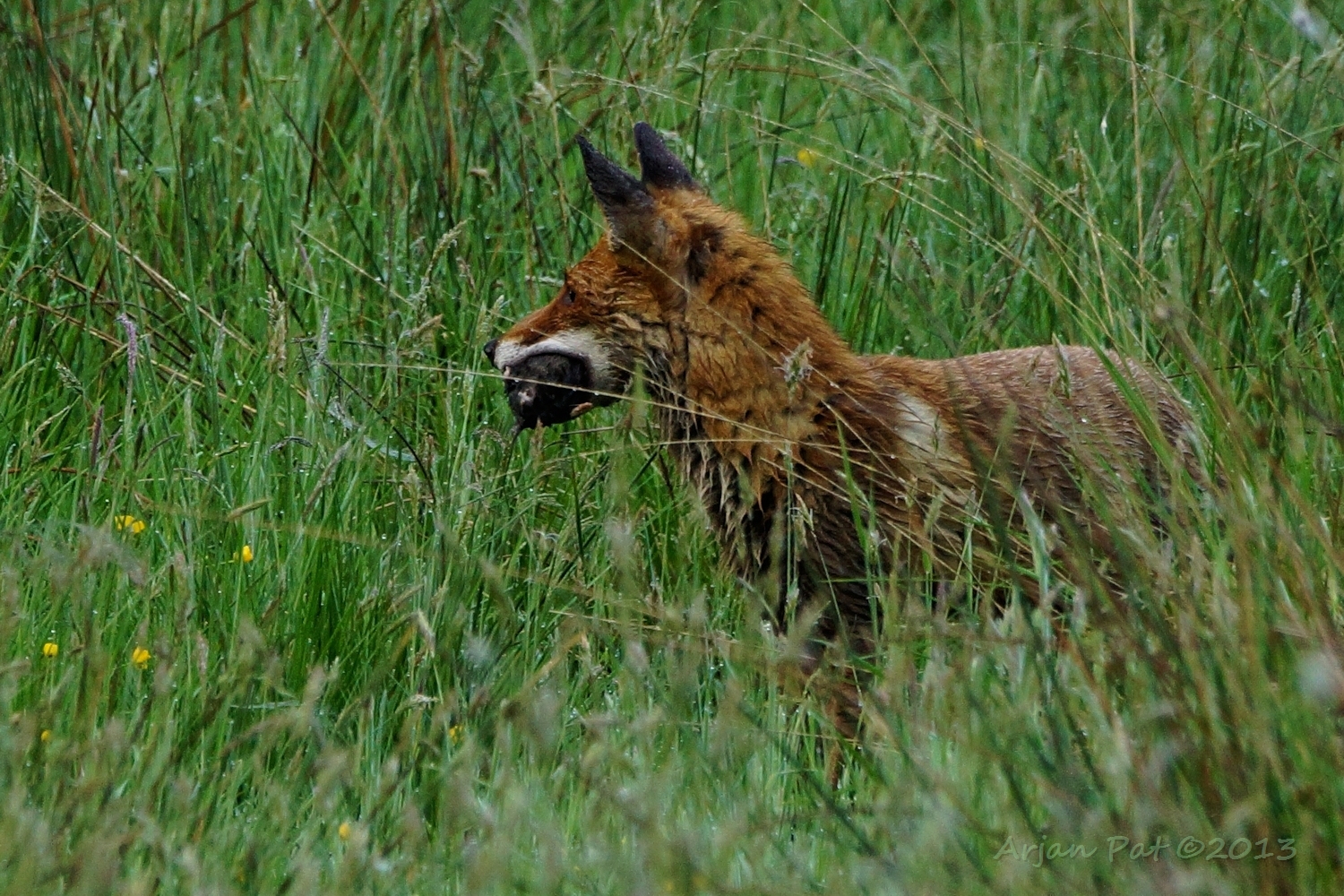 Net over het hoge grasgewas was een grazende reebok te zien....