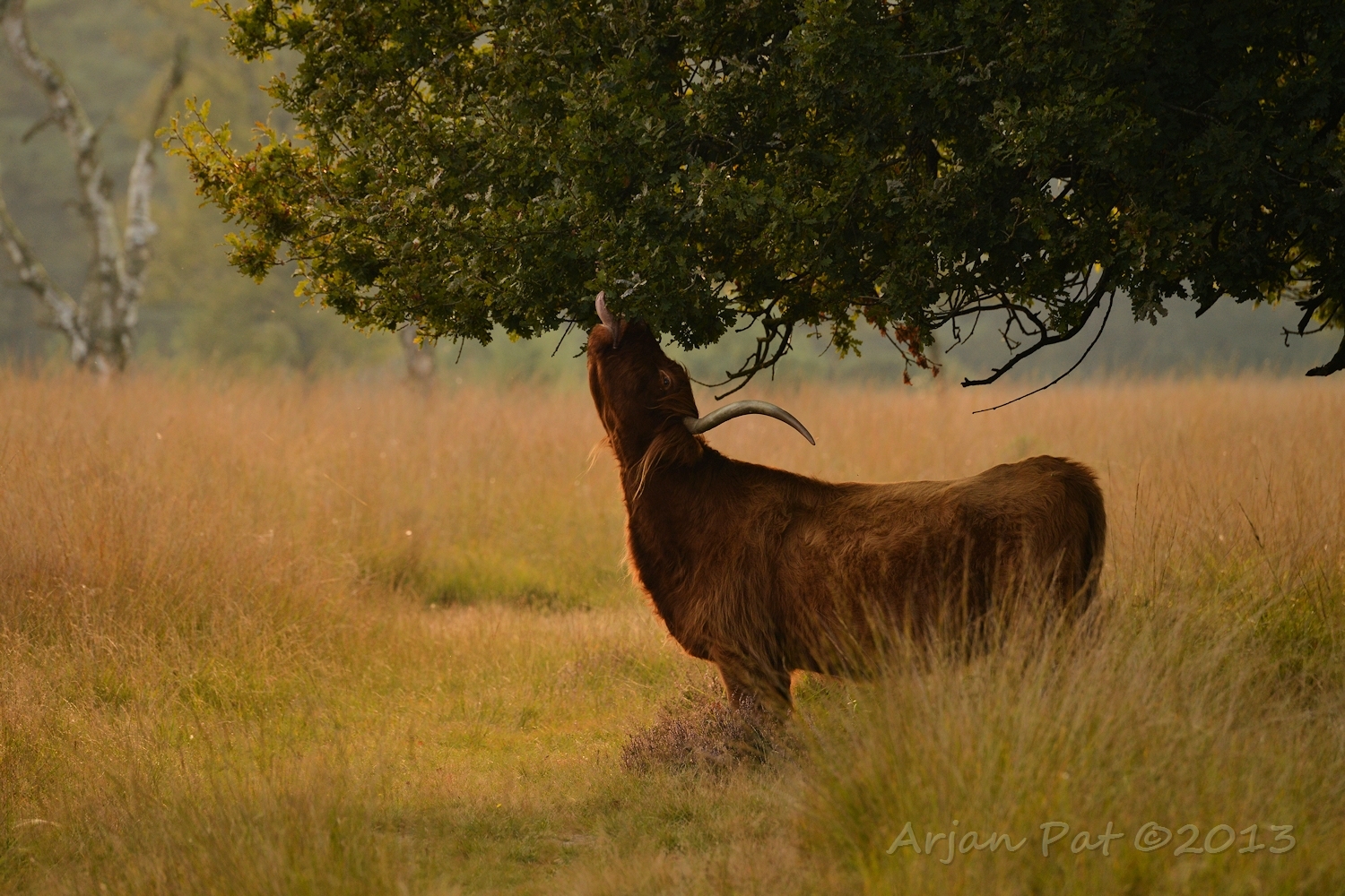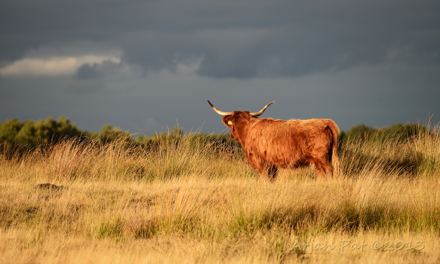 Schotse Hooglander kijkt uit over het Hijkerveld.