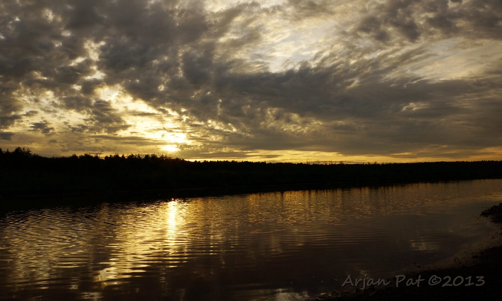 Het leek erop, dat we de zon niet zouden zien ondergaan. De zon zit hier nog boven de horizon, achter de wolken. Het werd soms gewoon even donker aan de horizon.
