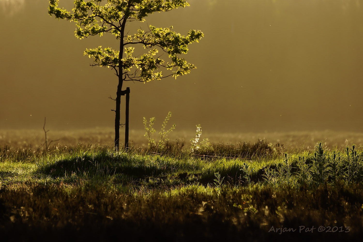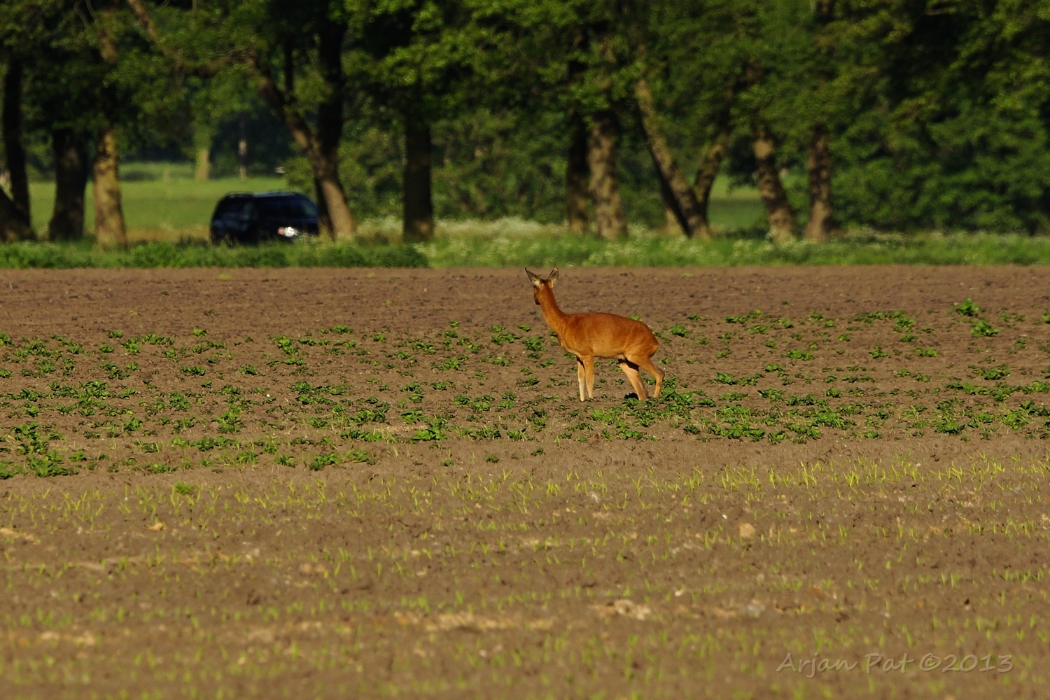 Ach, dat is mijn auto ja, maar dat zijn geen lichten, dat is de zon, die weerkaatst in een koplamp.