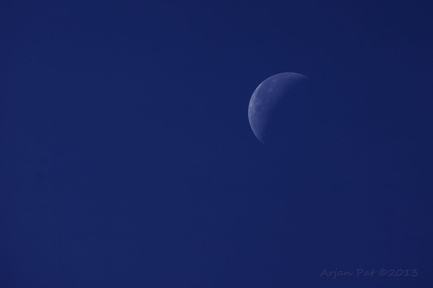 Het was zo helder, dat de maan gewoon blauw was in de blauwe lucht.