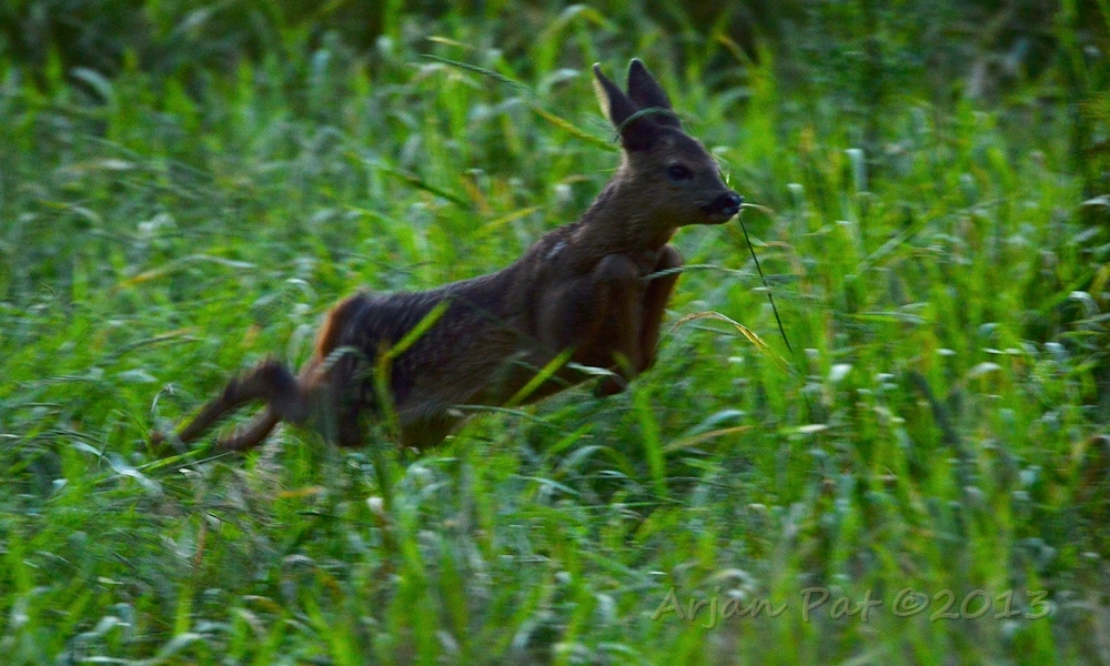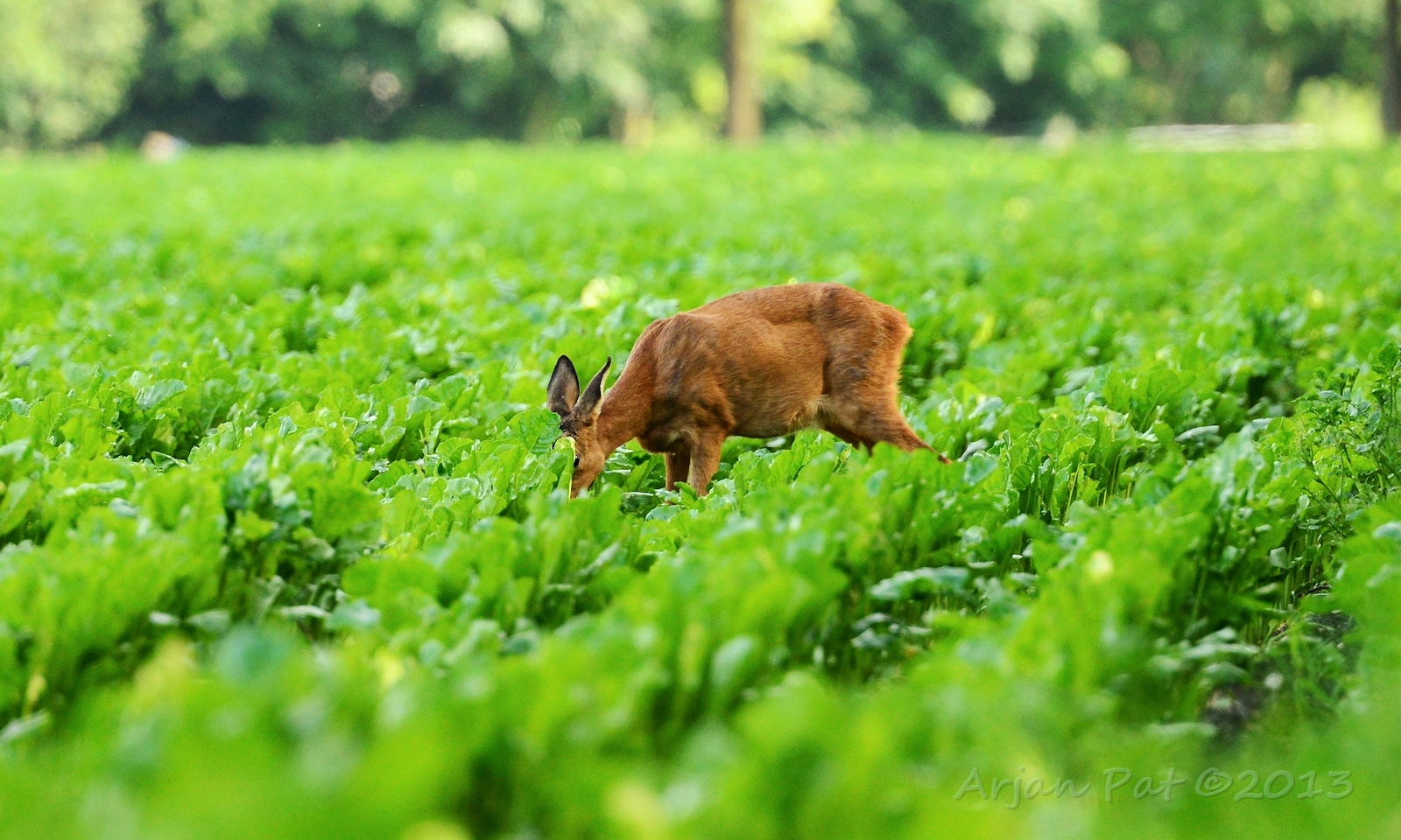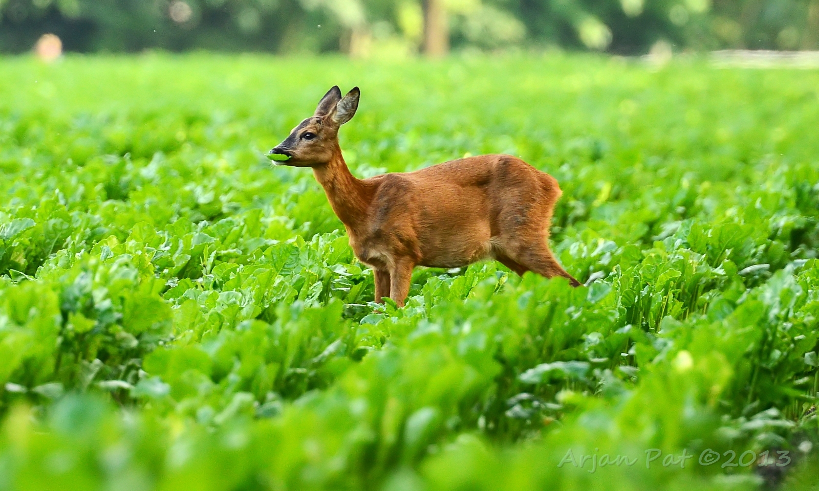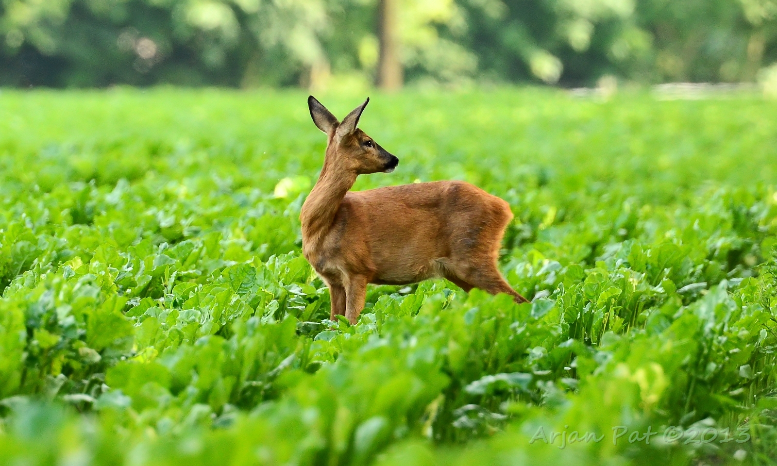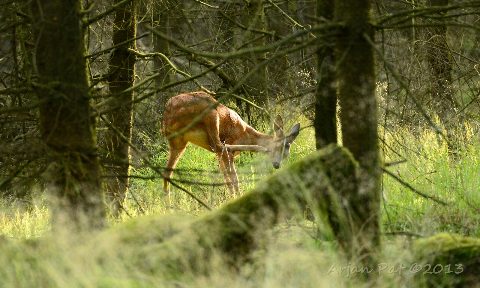 Deze reegeit keek ook verdacht vaak achterom. Bij nader onderzoek bleek ze een jong te hebben; wel gezien, maar niet op de foto gekregen.