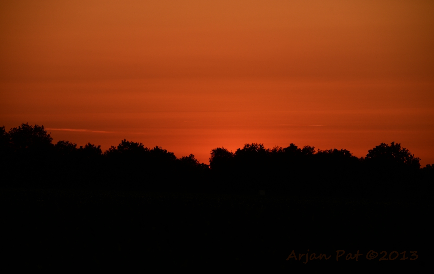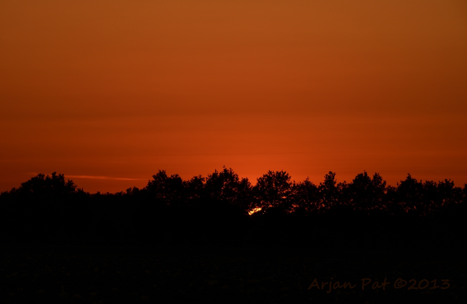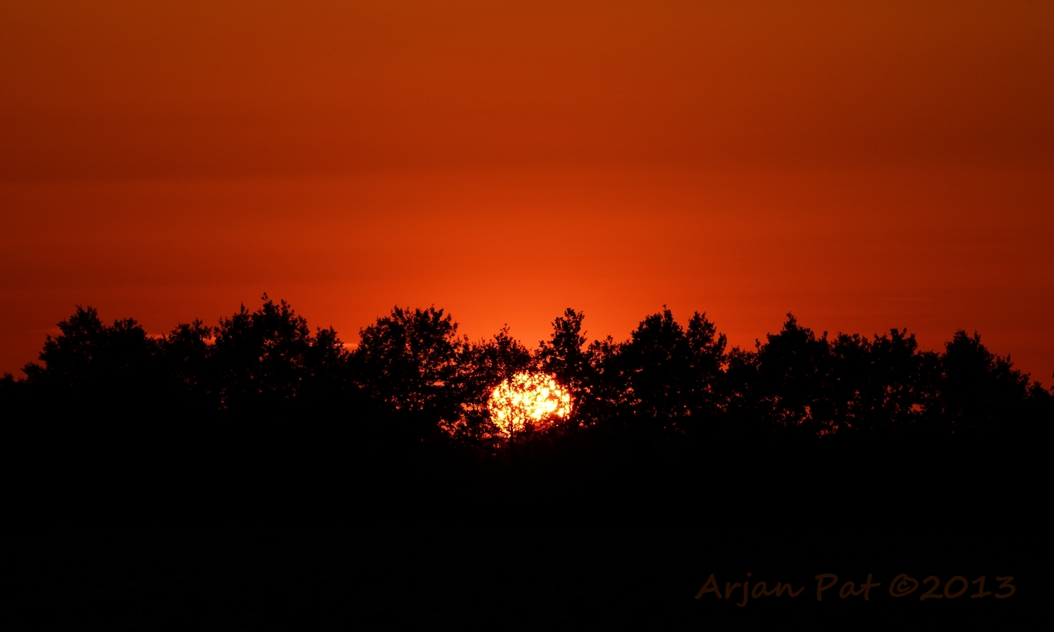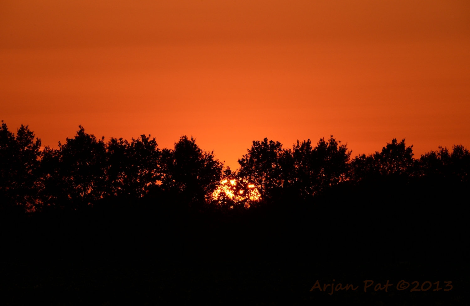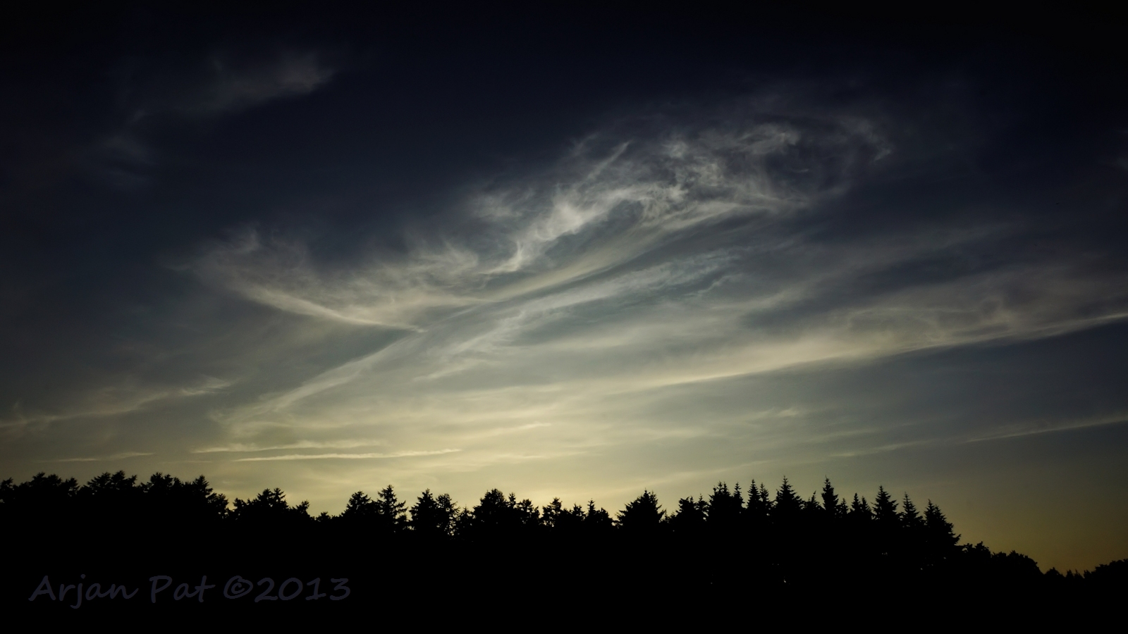 Even later stond ik aan de andere kant van de boom. De zon was nu helemaal weg en liet een donkere lucht achter met een flauw roze gloed in de wolken.