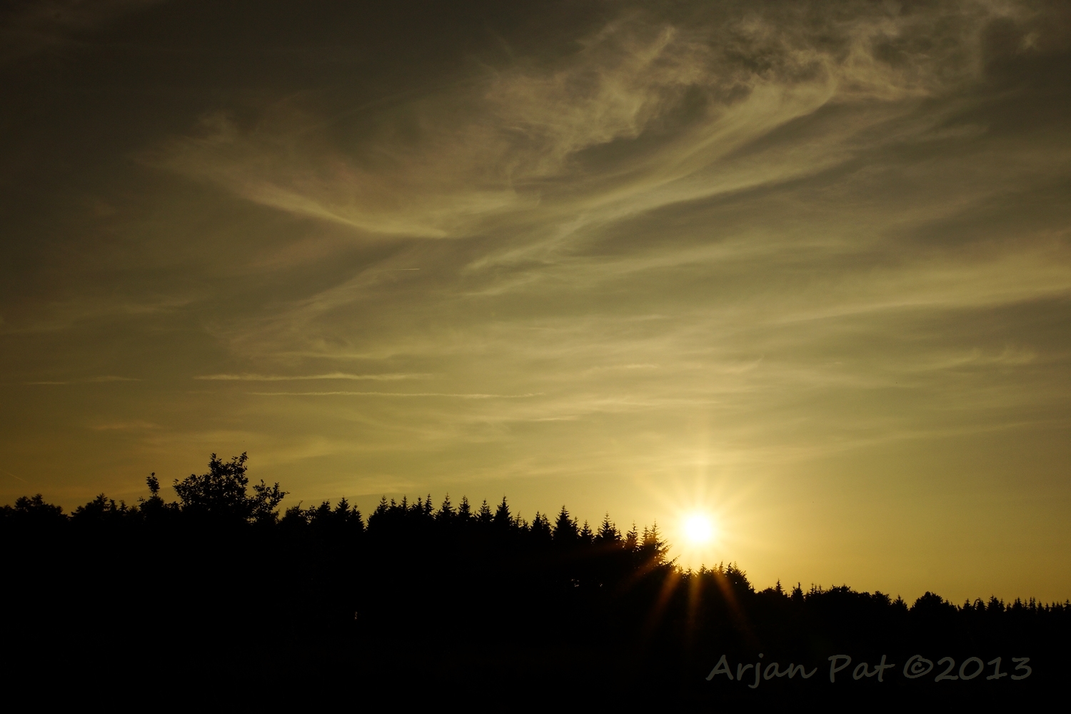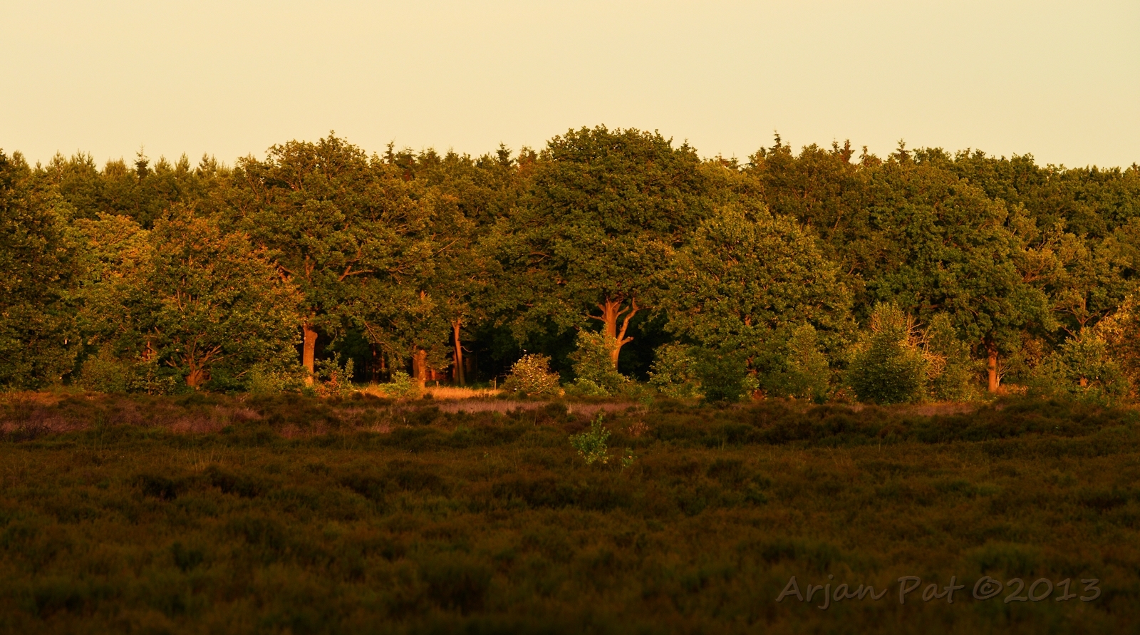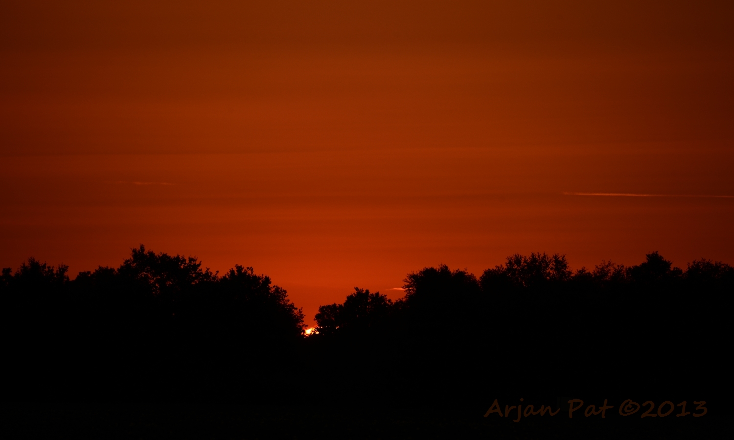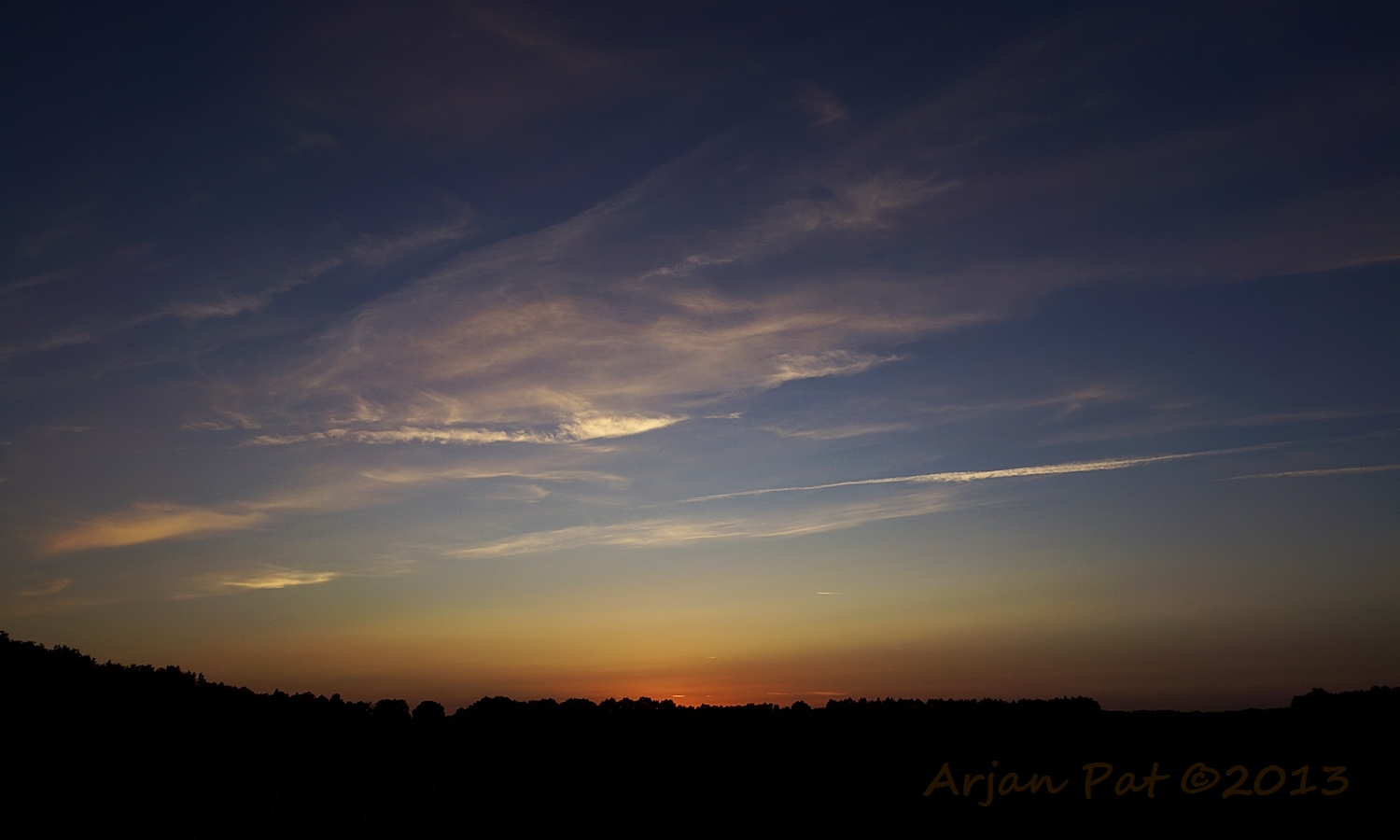 Even later stond ik aan de andere kant van de boom. De zon was nu helemaal weg en liet een donkere lucht achter met een flauw roze gloed in de wolken.