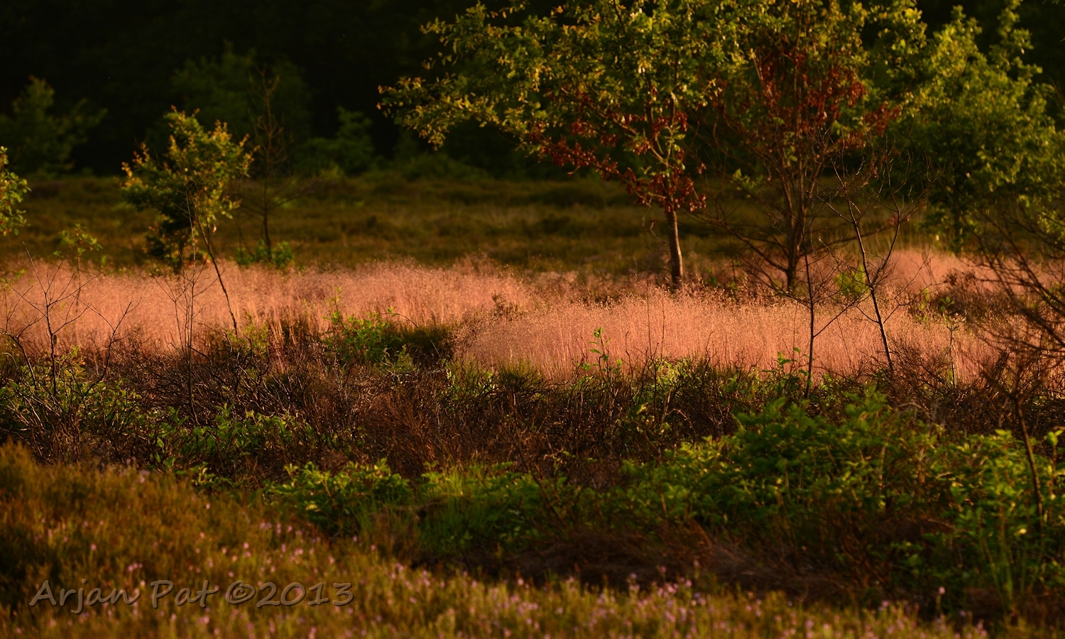 Wat veel roodachtige kleuren hier zeg; dode bladeren, afgebrande heide, stengels van de bente, roze heide...