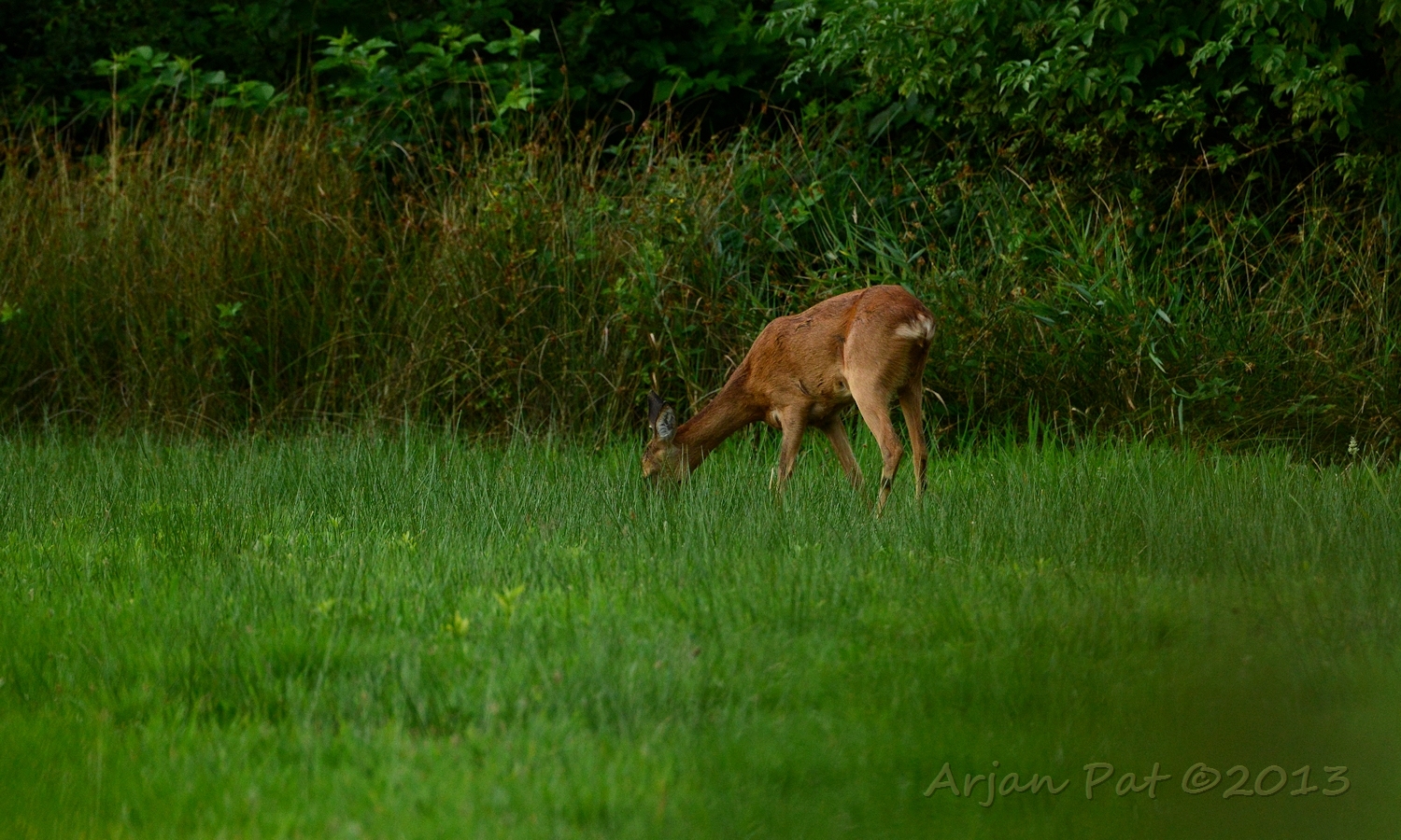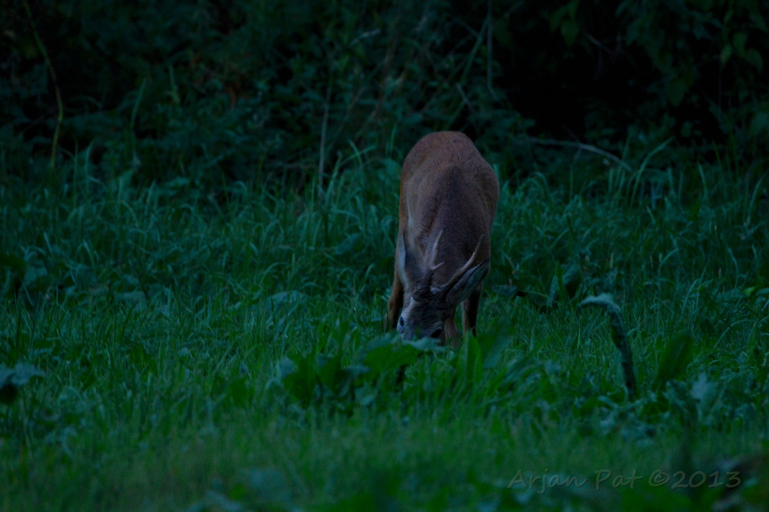 Mooie van een zonsondergang is dat je veel reeën kunt waarnemen. Mindere daaraan echter is dat ze dan niet zo mooi te fotograferen zijn.