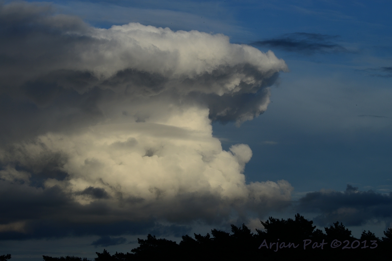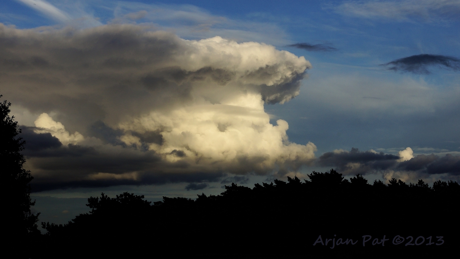 Als je goed kijkt is deze foto tegen de zon ingenomen. Maar op de achtergrond zijn alleen maar wolken? De zon scheen tussen de wolken door op dit wolkje, daarom was dit ook wel een apart gezicht (om het live mee te maken).