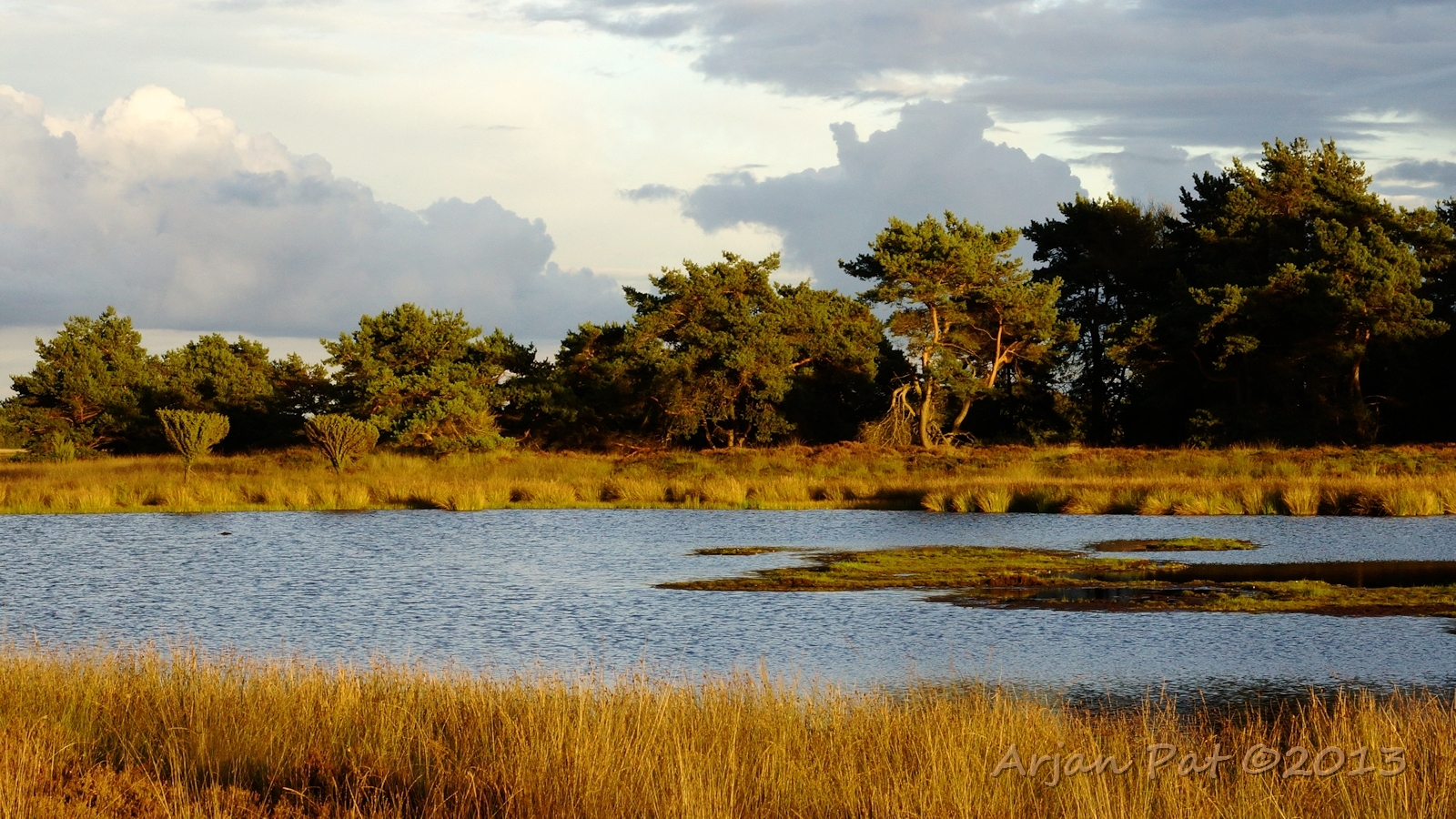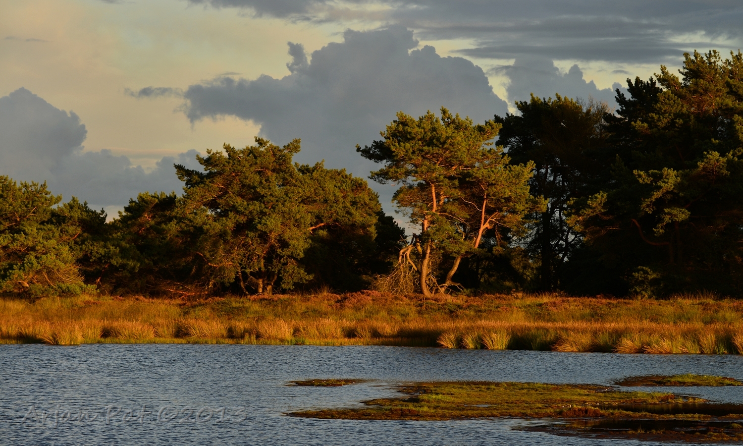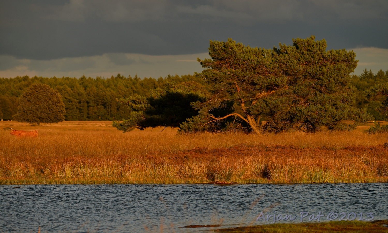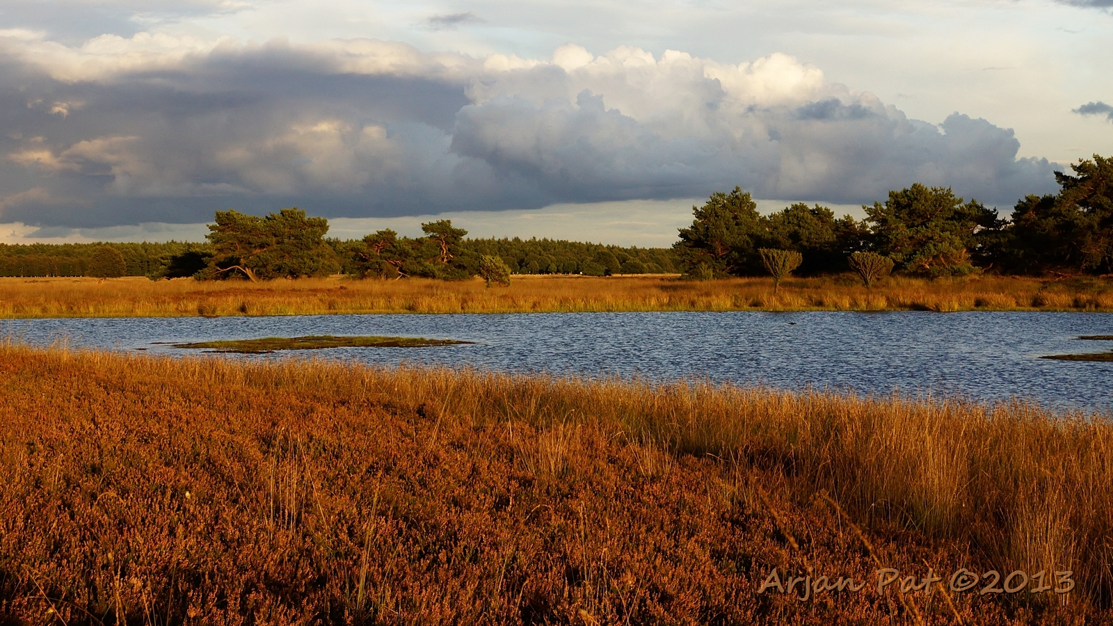 Net voor zonsondergang even een wandelingetje gemaakt over het Hijkerveld. De zon stond al laag en er waren links en rechts van mij dreigende wolkenvelden, waaruit het zichtbaar regende.