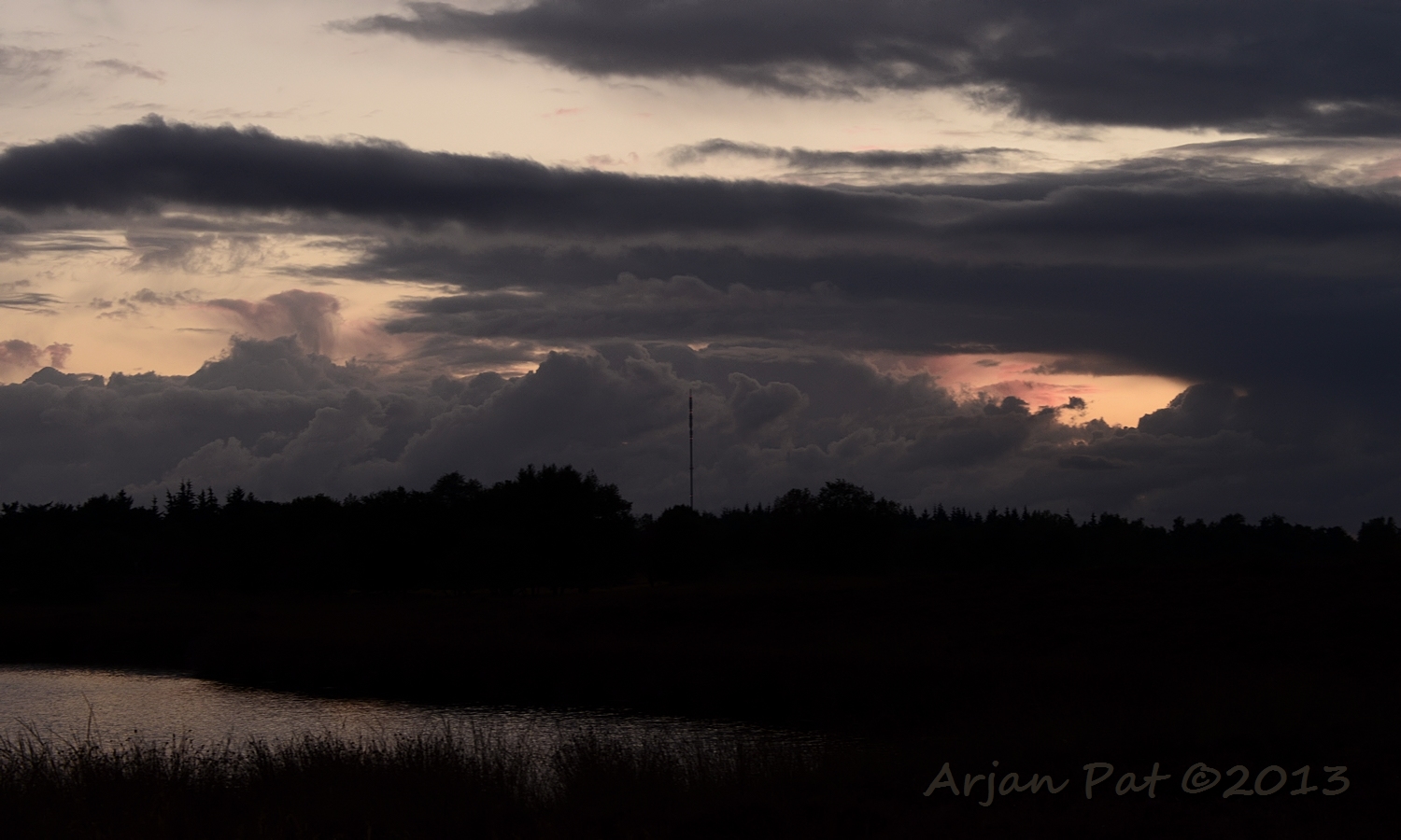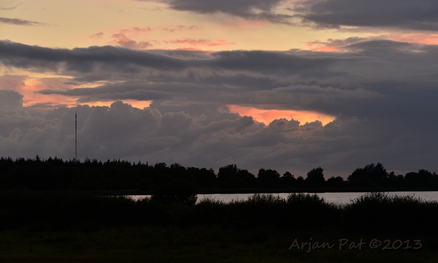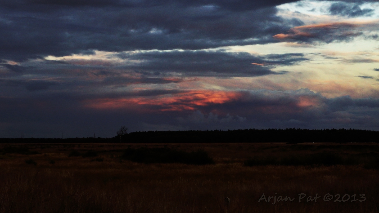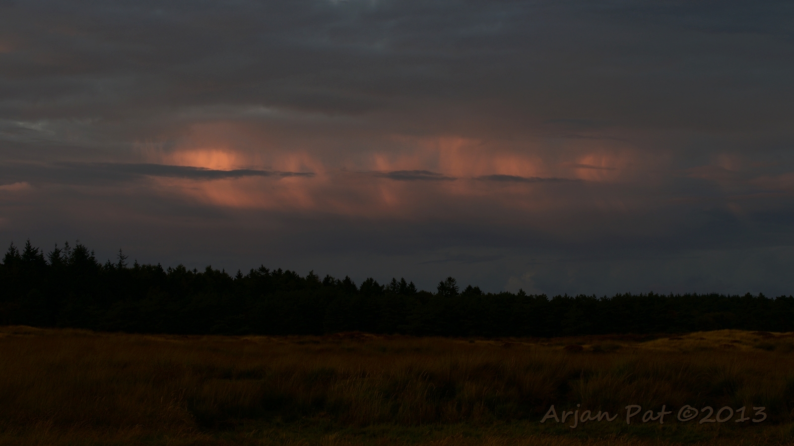 Ondanks dat er her en der kleine regenbuitjes te zien waren (mooi te zien op die weidse vlakte) heb ik het de hele avond droog gehouden.