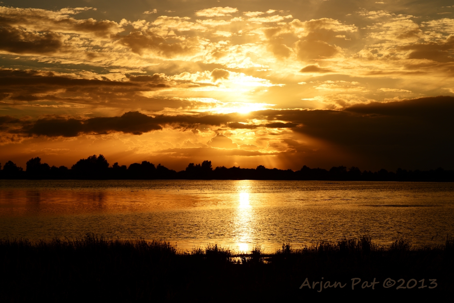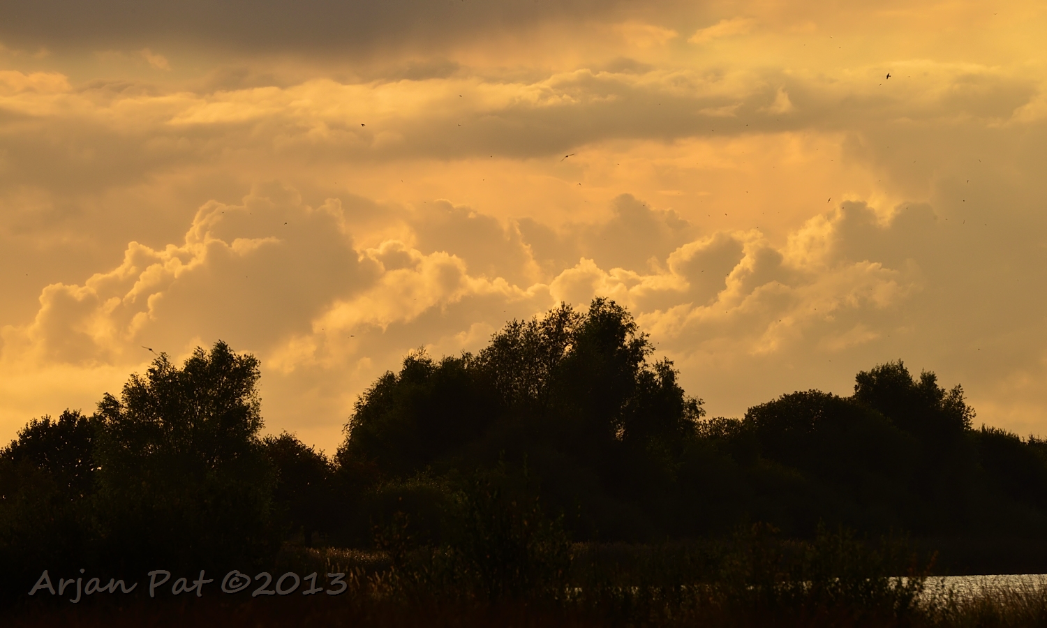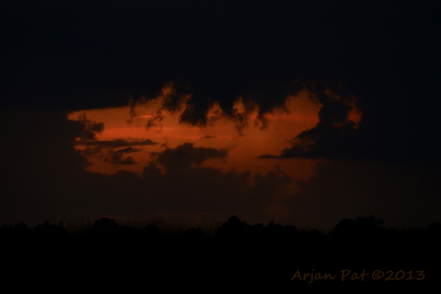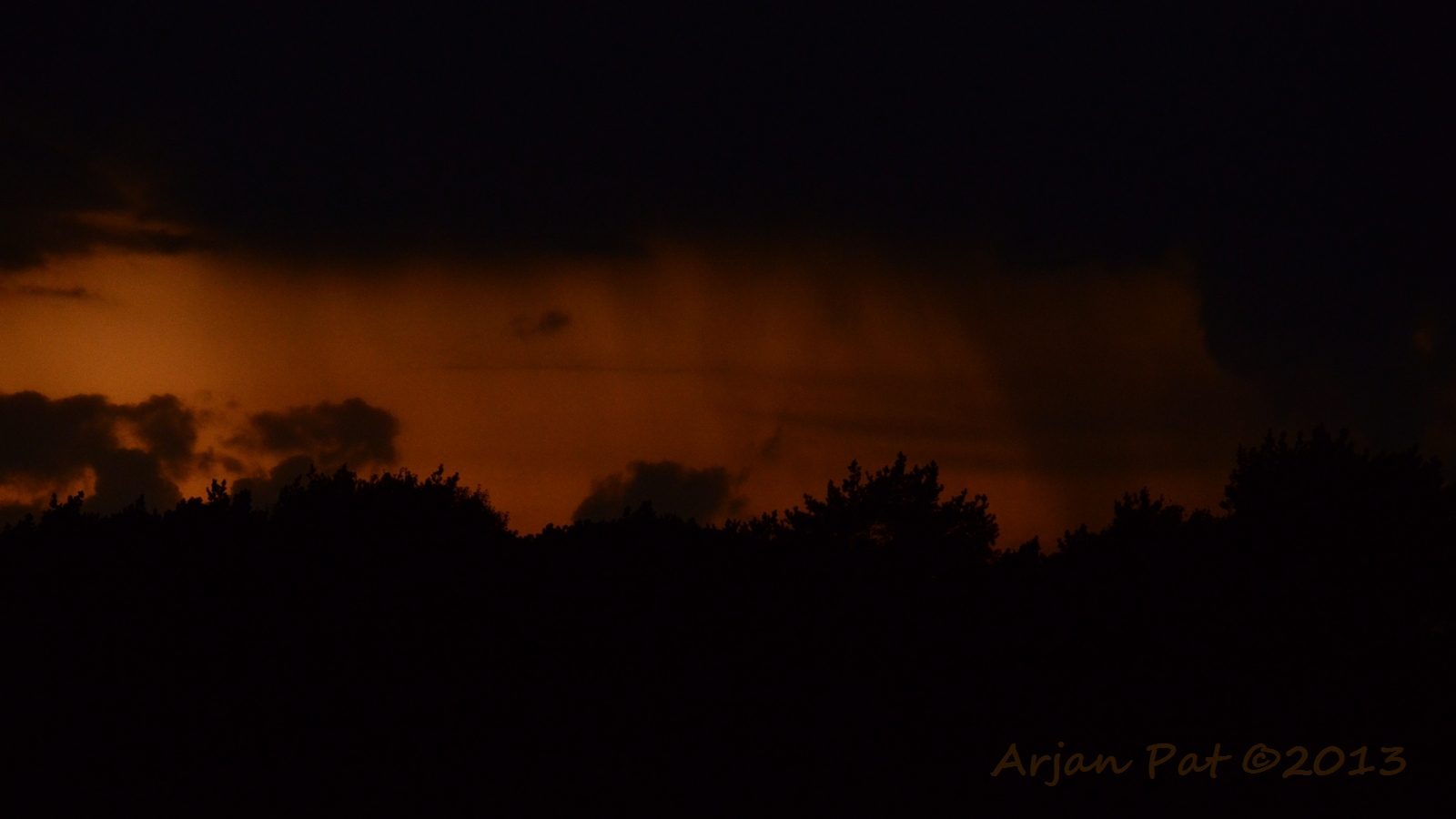 Ondanks dat er her en der kleine regenbuitjes te zien waren (mooi te zien op die weidse vlakte) heb ik het de hele avond droog gehouden.