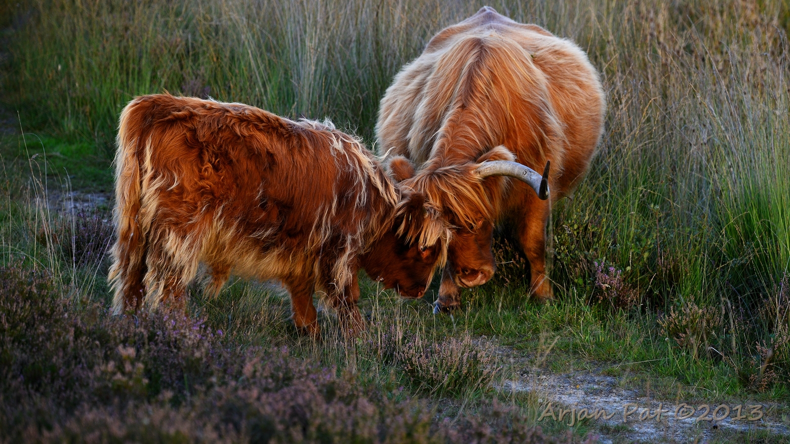 Het jonge stiertje daagde z'n moeder uit, maar die had er blijkbaar niet zoveel zin in, want ze stootte hard terug (en dat was goed te horen.