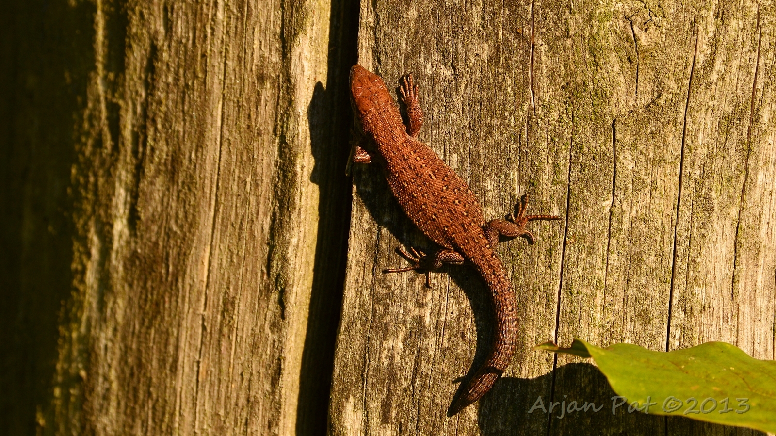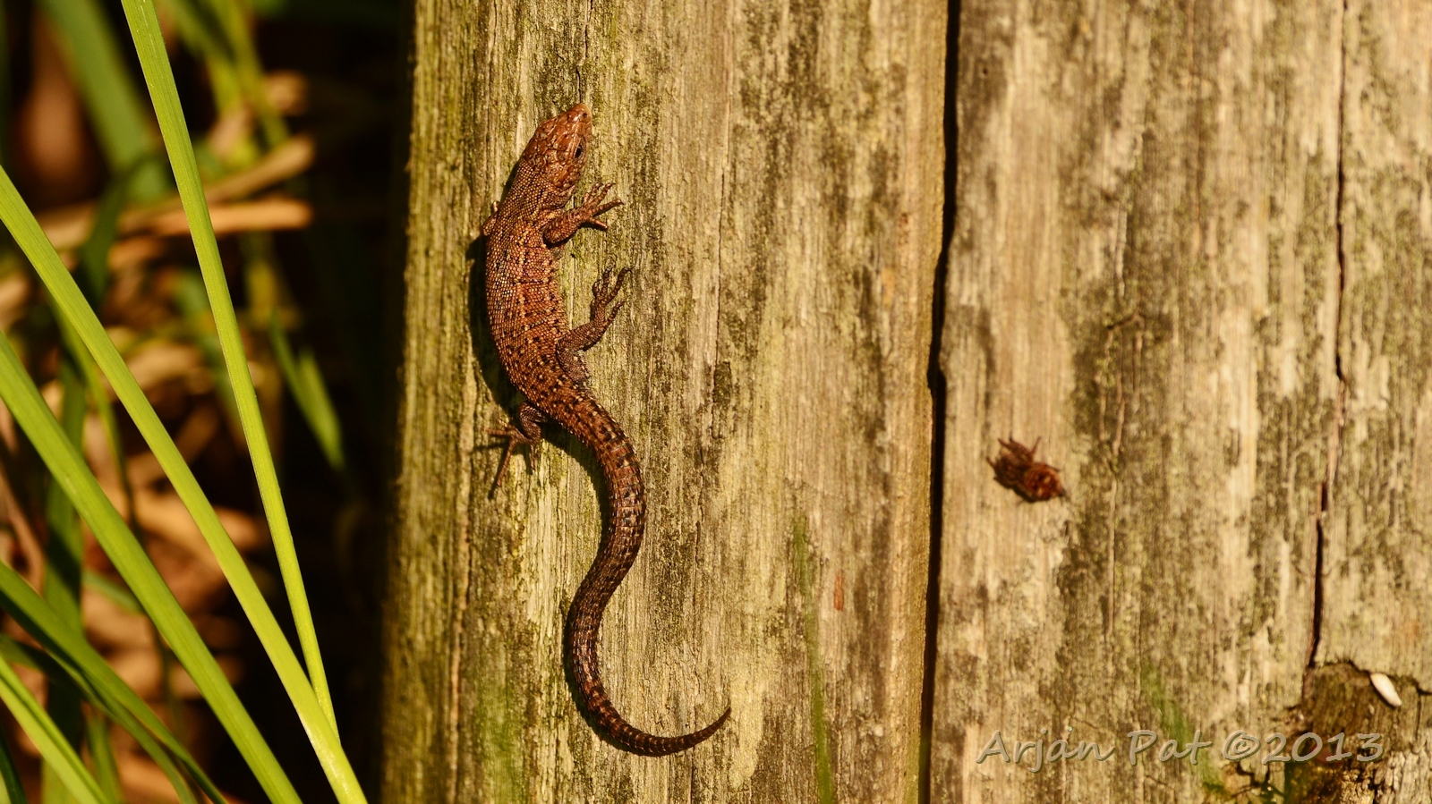 Op de terugweg zat er een andere hagedis op dit paaltje.