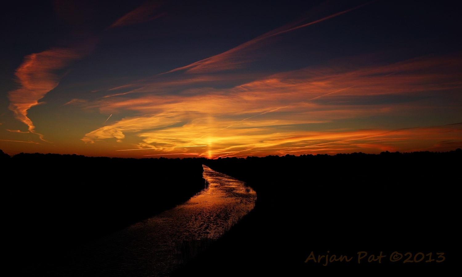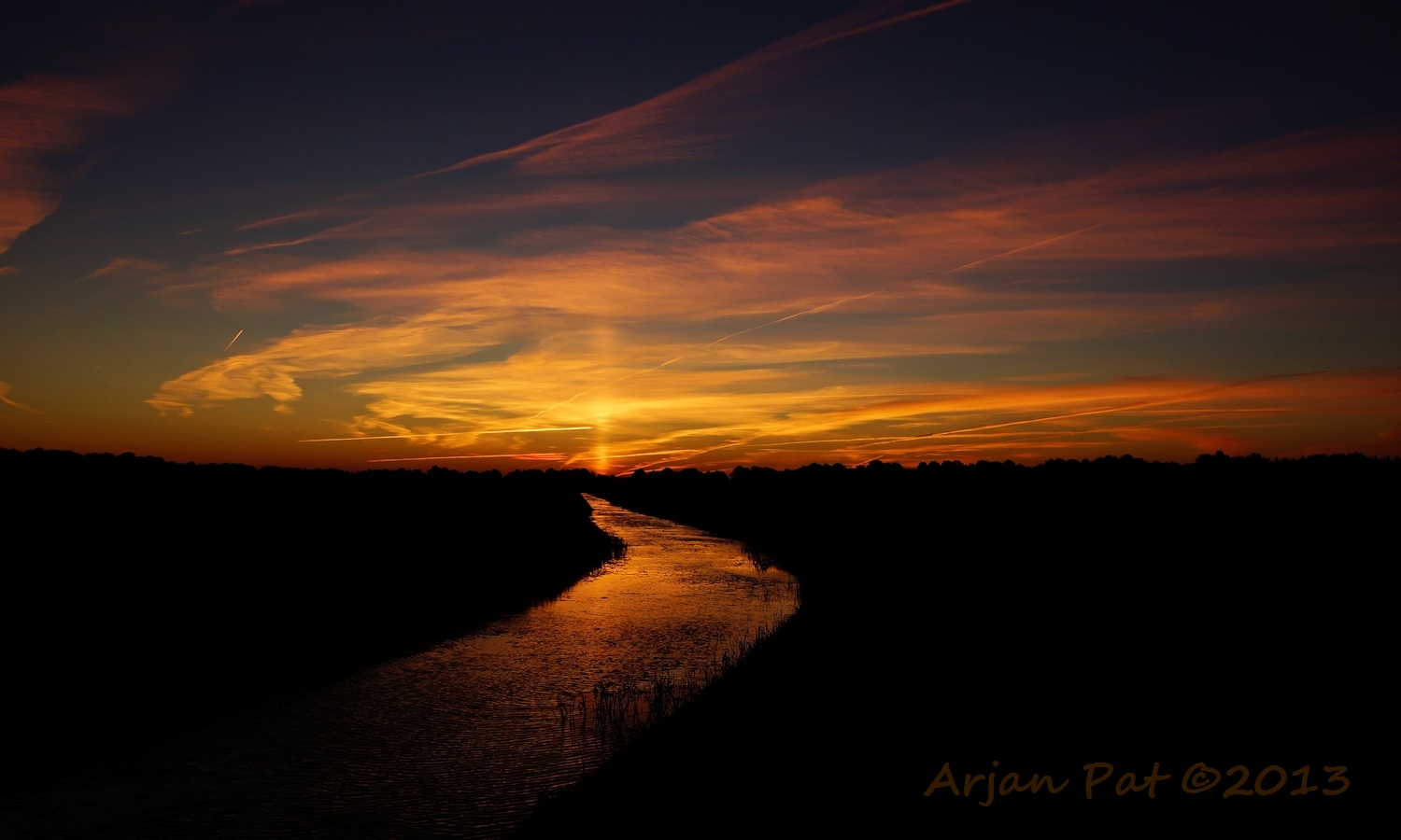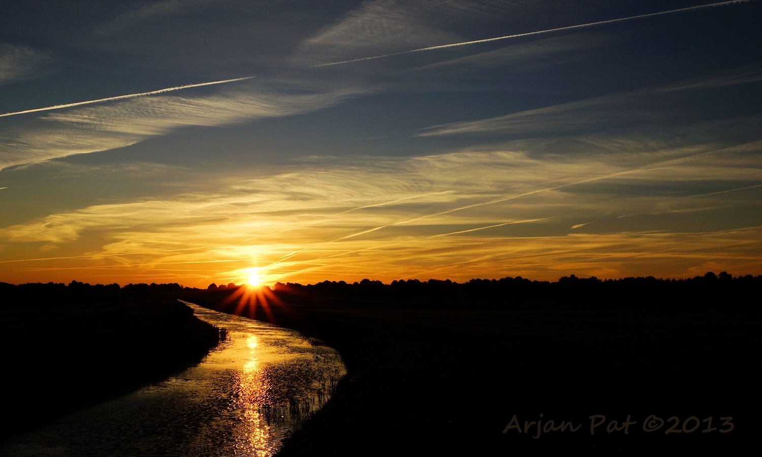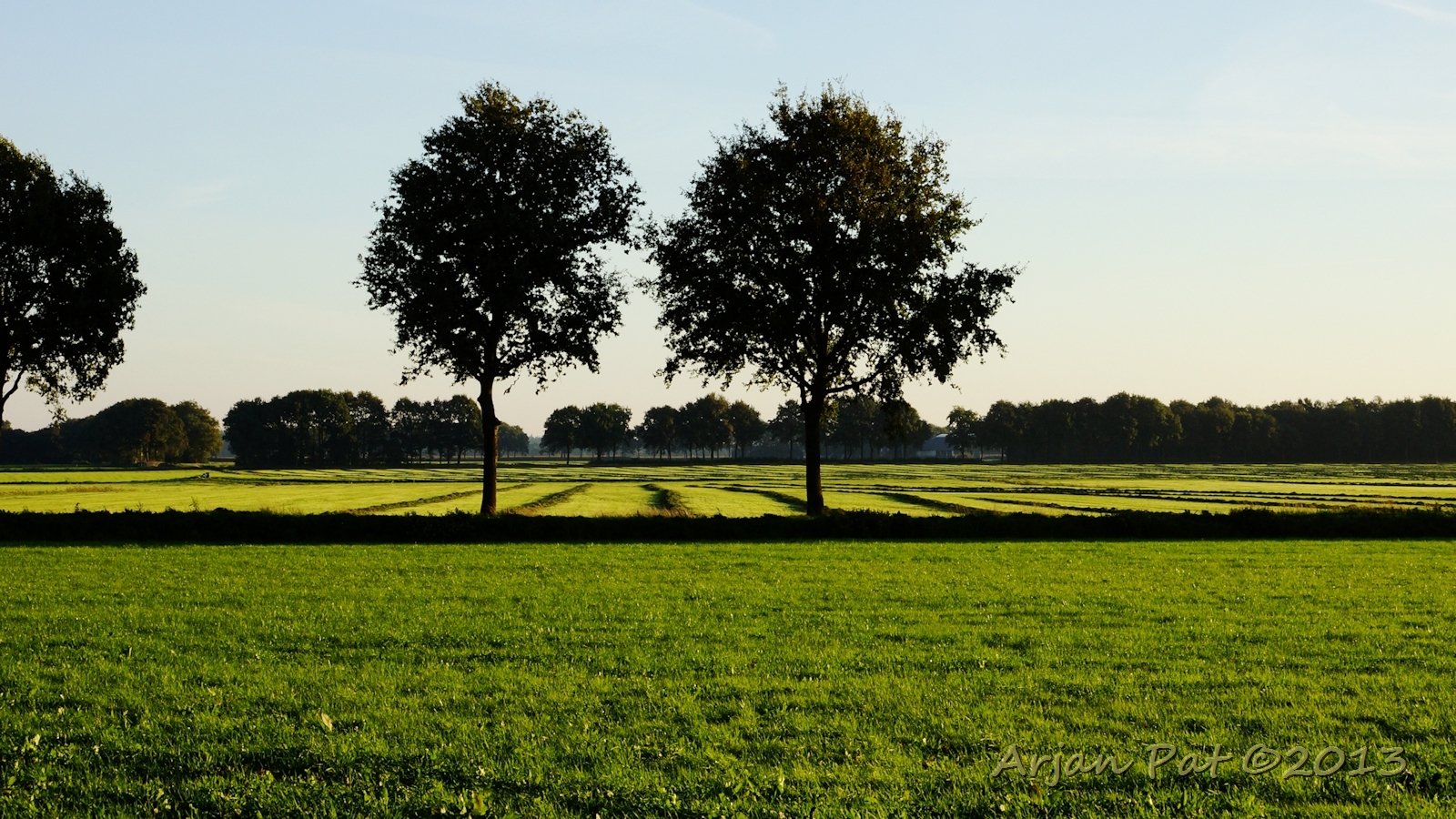 Daar liep ik zojuist, midden in de weilanden, waar het Amerdiep doorheen loopt. Kun je niet zien op deze foto, behalve een watersluis (heel klein aan de linkerkant).