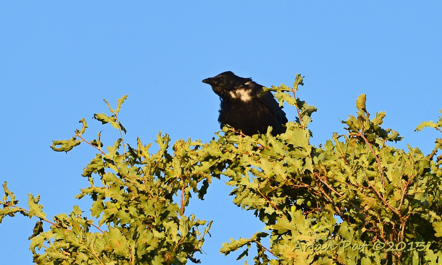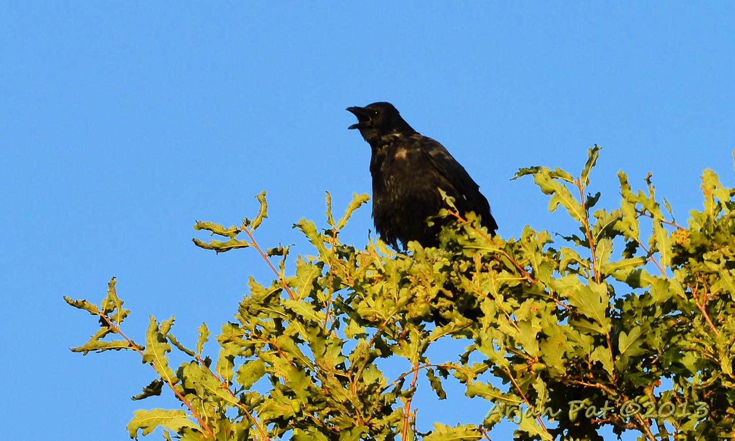 Ik wist niet dat kraaien alleen zwart zijn aan het uiteinde van z'n verenpakket. Dit is mooi te zien op deze foto, waarbij de wind vat kreeg op z'n verenkleed.