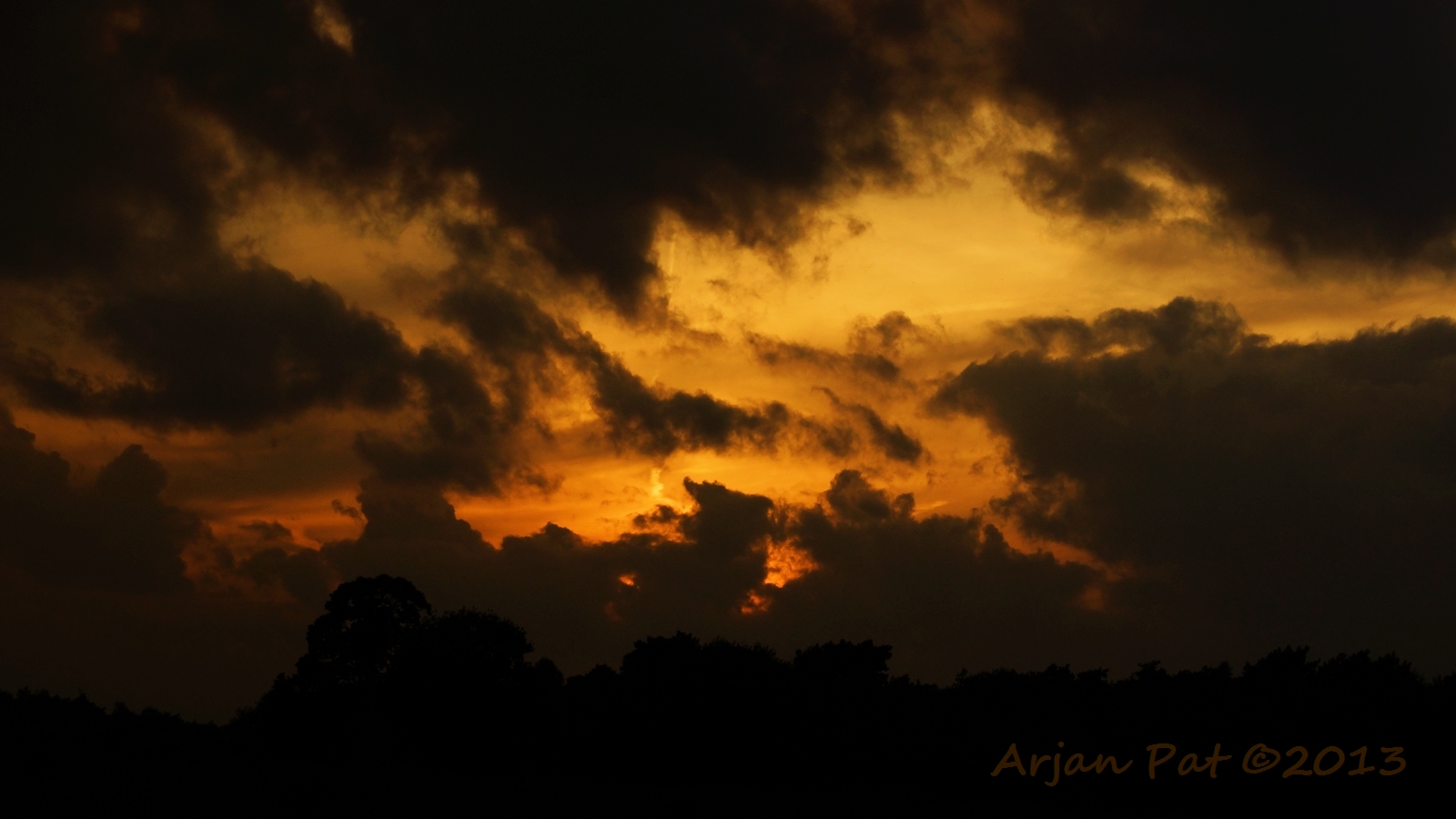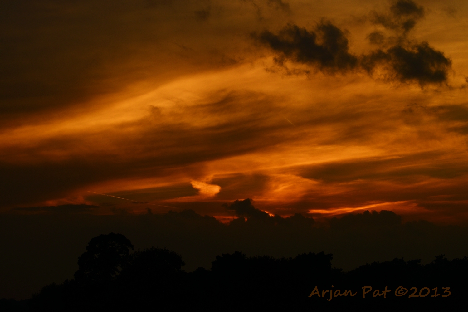 Geen heel mooie zonsondergang, maar wel aparte oranje luchten.