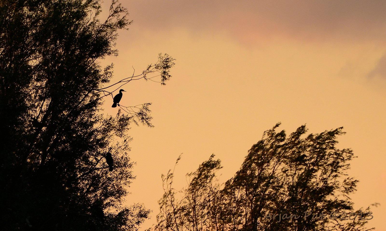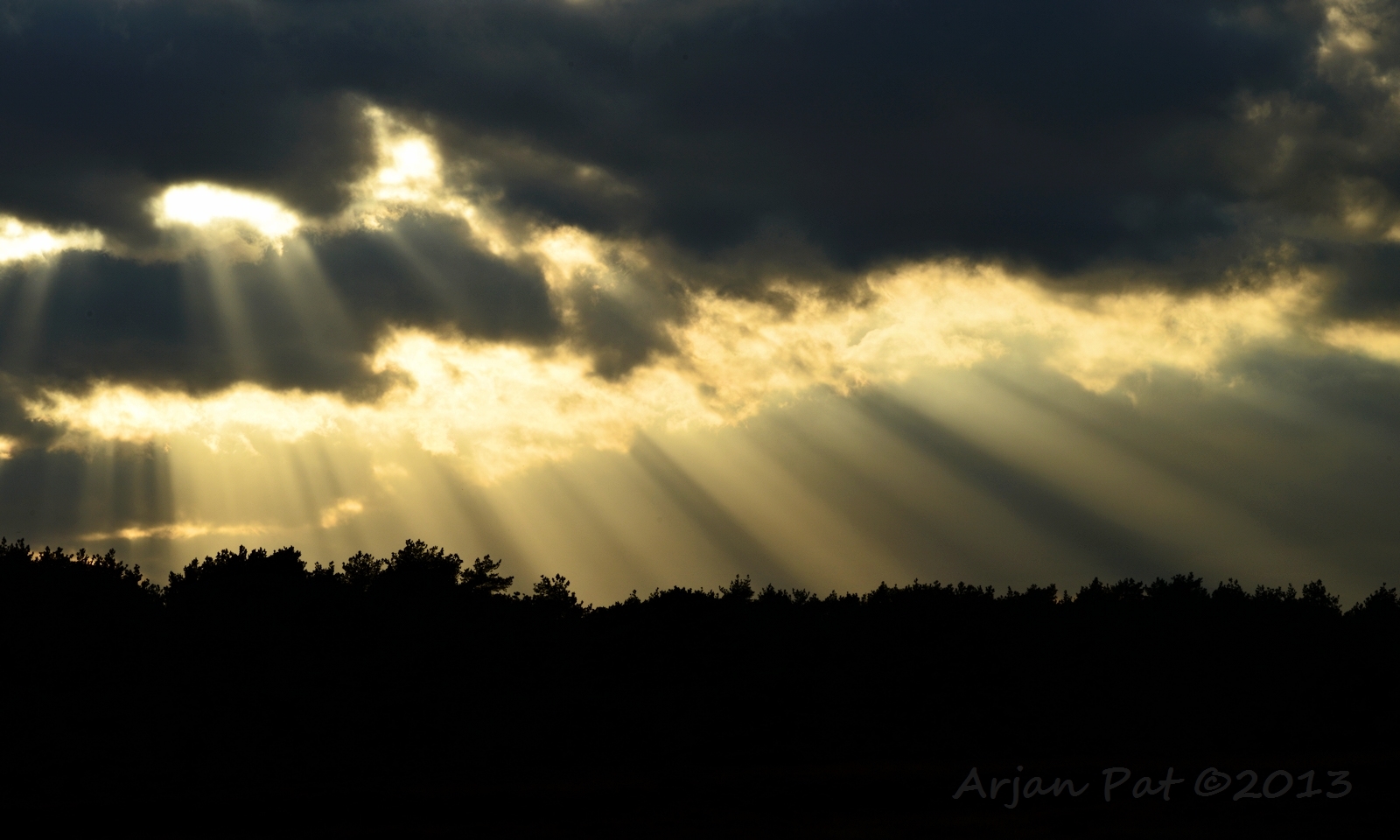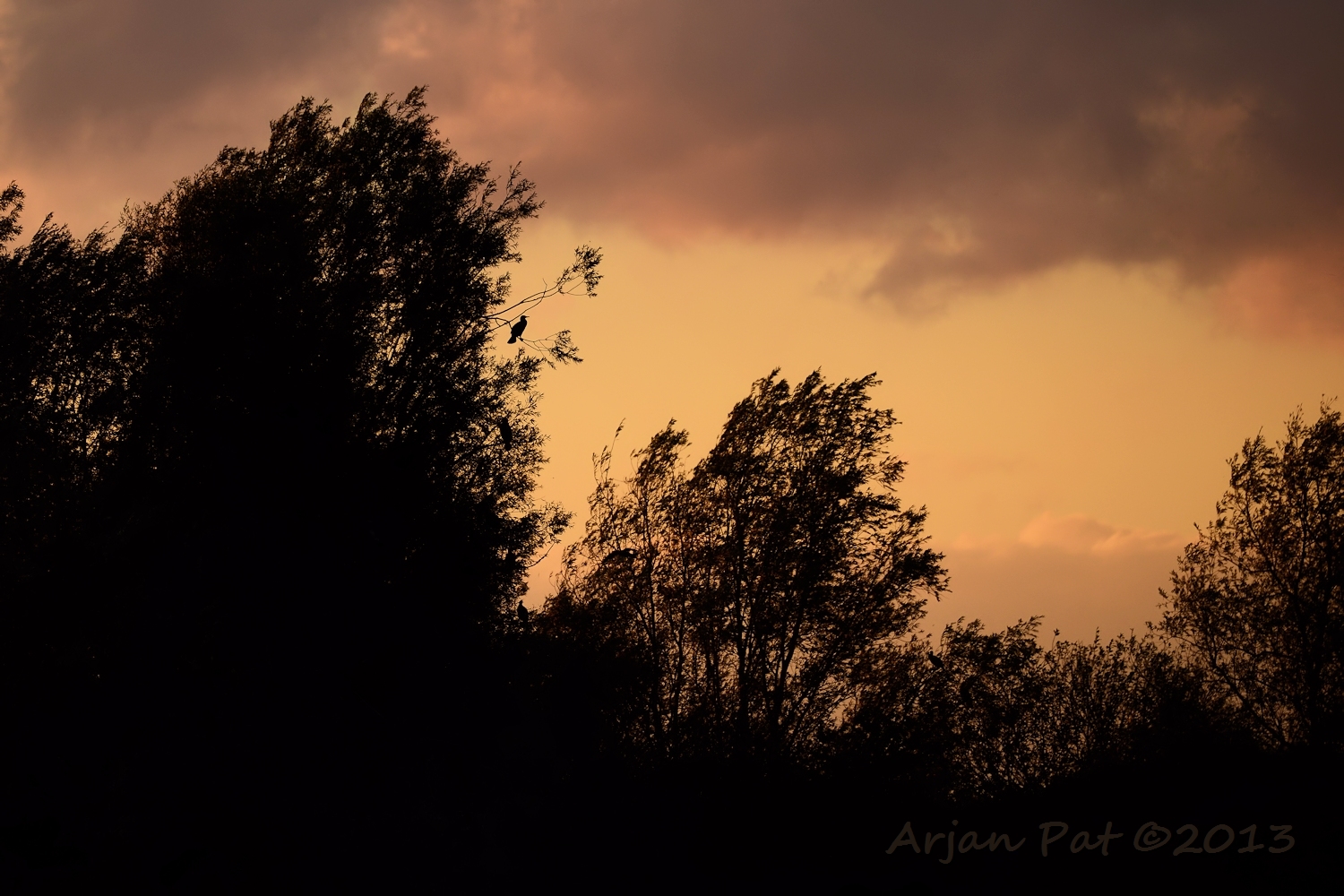 Wat stak die boom toch mooi af, zeker toen de lucht donker werd en de zon op de ze bosrand scheen.