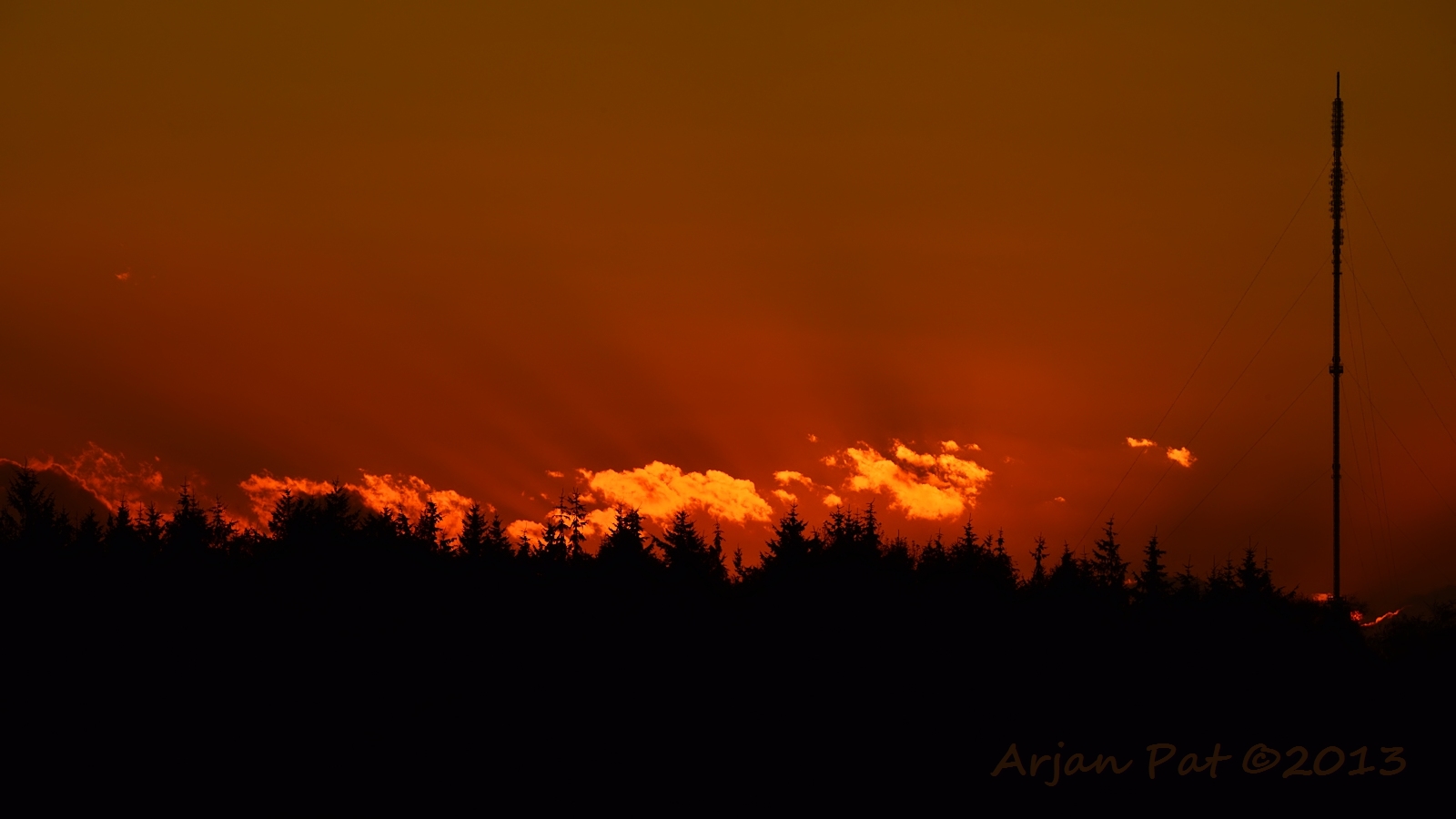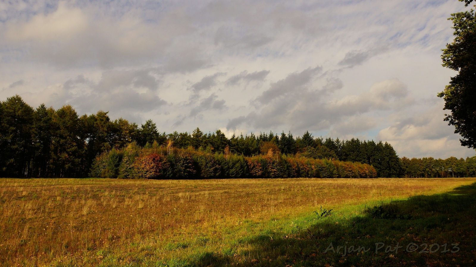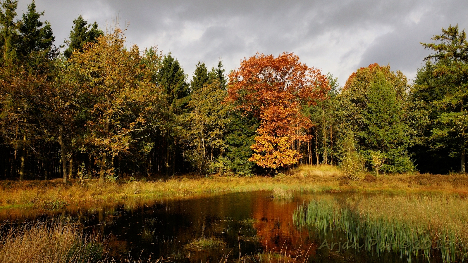 Wat stak die boom toch mooi af, zeker toen de lucht donker werd en de zon op de ze bosrand scheen.