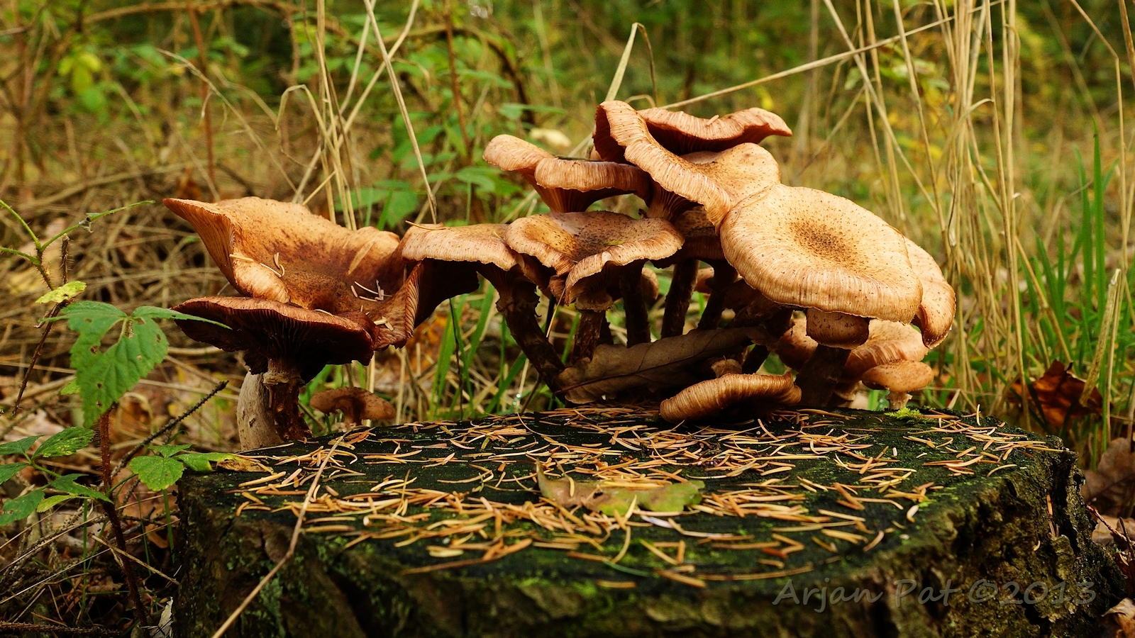 Heb je die kleine beestjes vooraan deze zakjestrilzwam wel gezien?
