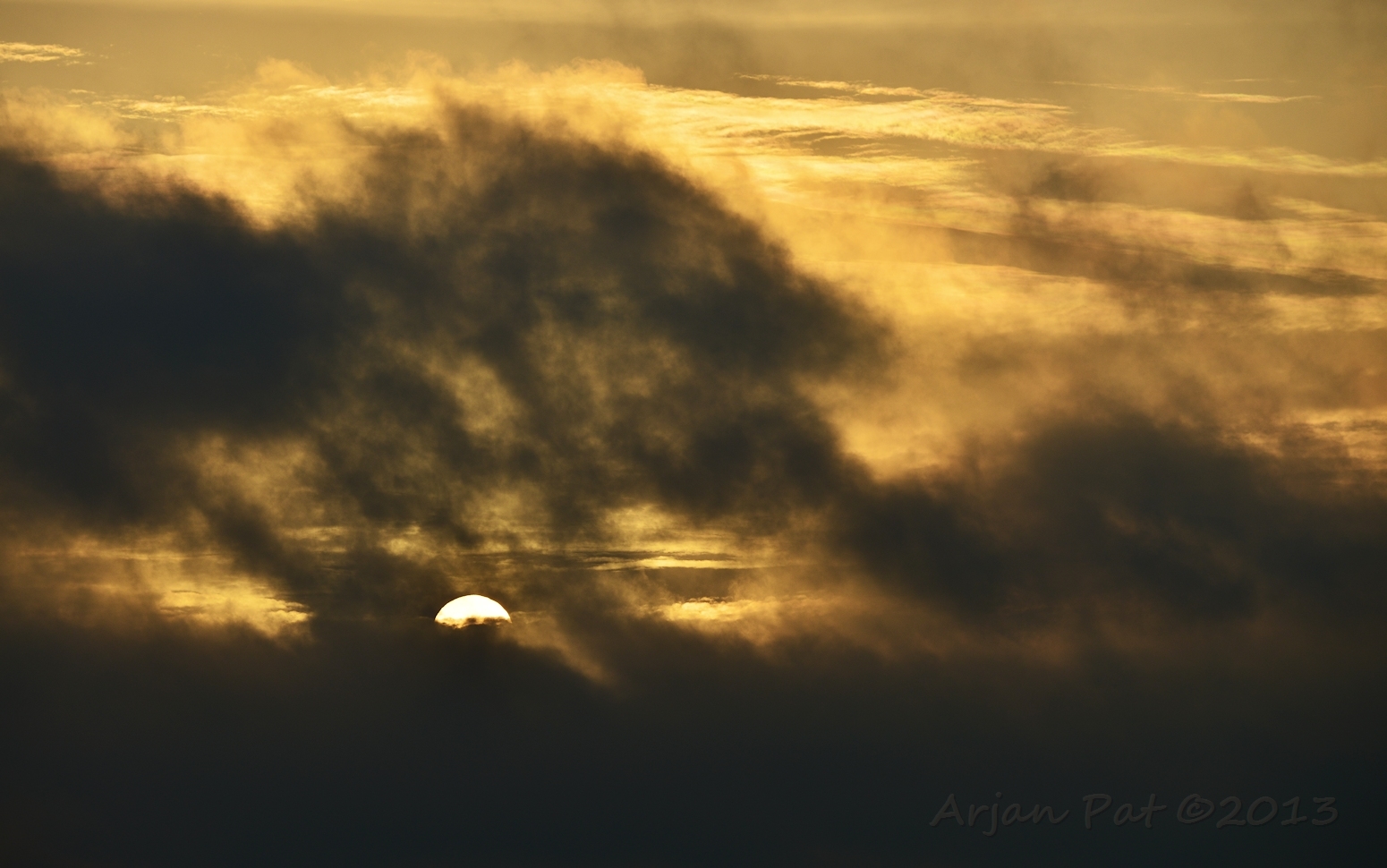 Vaag liet het zonnetje zich zien, maar het was inmiddels al even na (de verwachte) zonsopkomst.