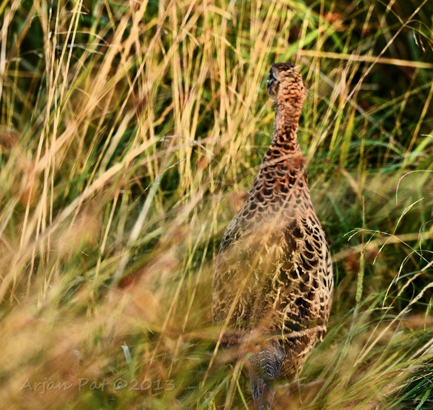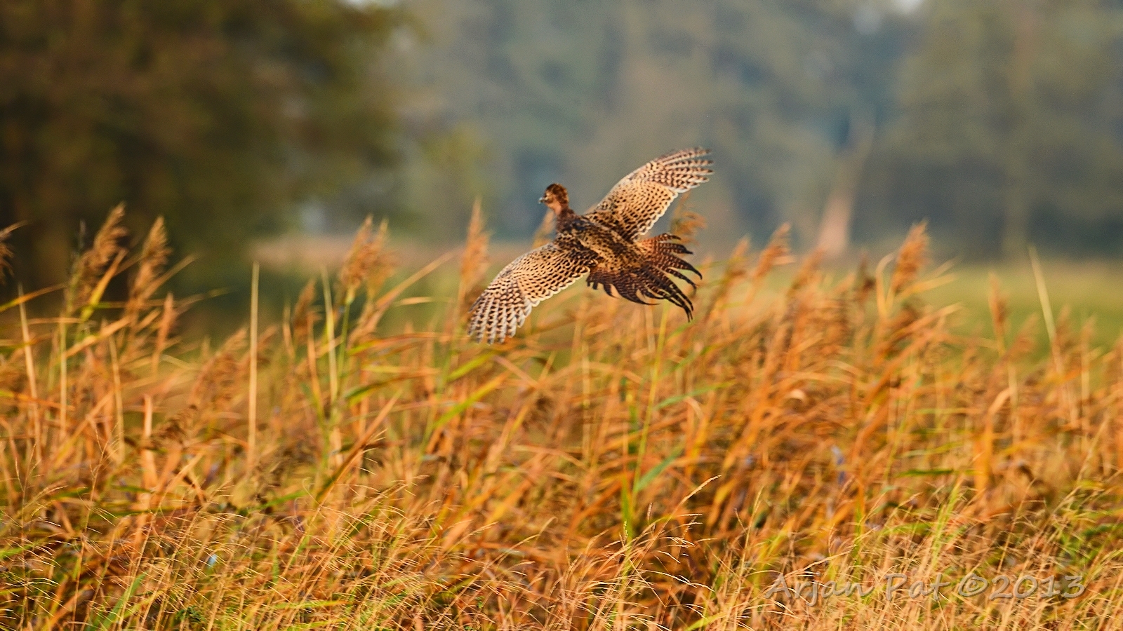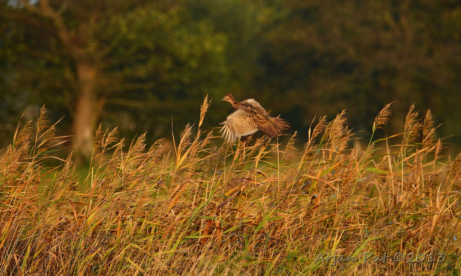 Ik hoorde al wat vogelgeluiden van een grotere vogel, maar had niet door dat het fazanten waren, tot er plots eentje vlak voor mij stond.