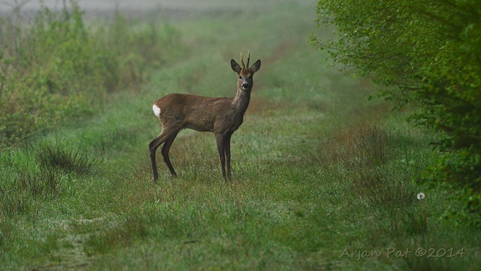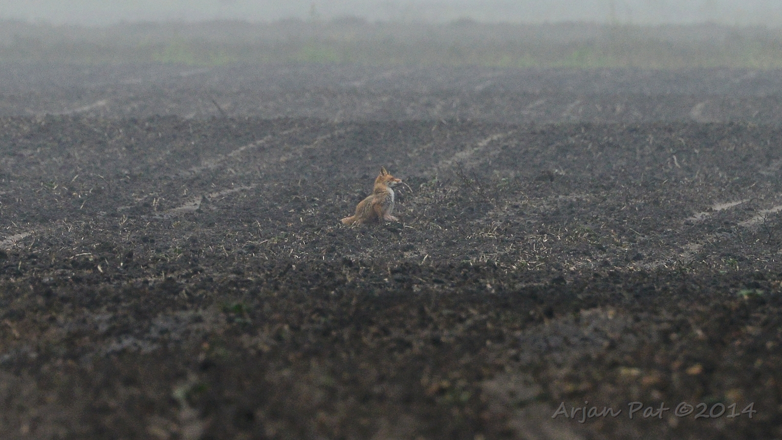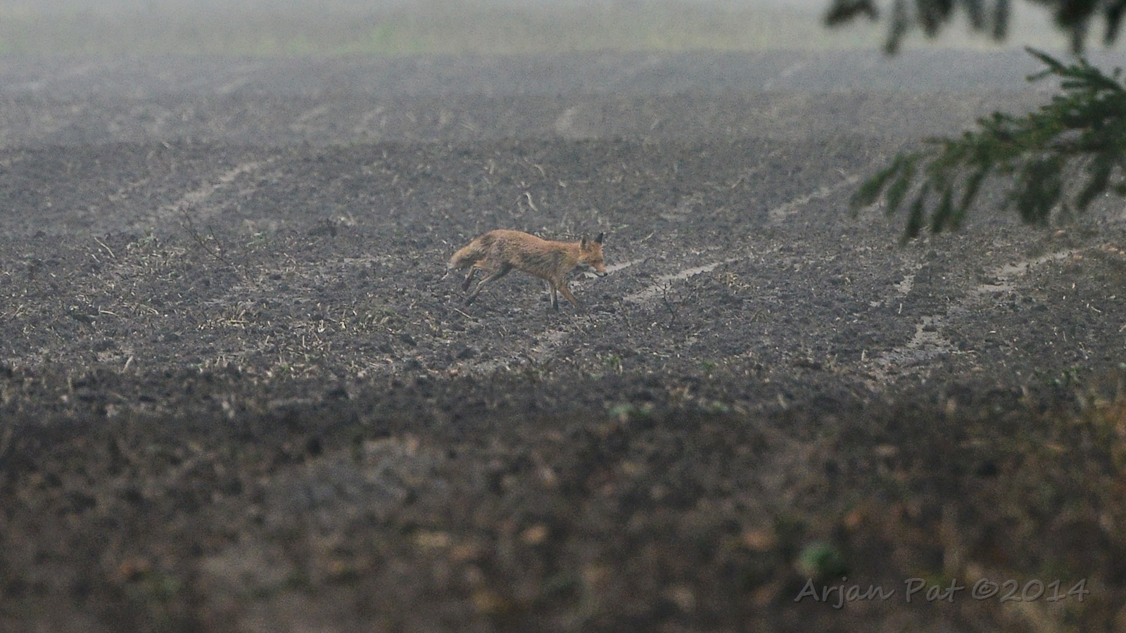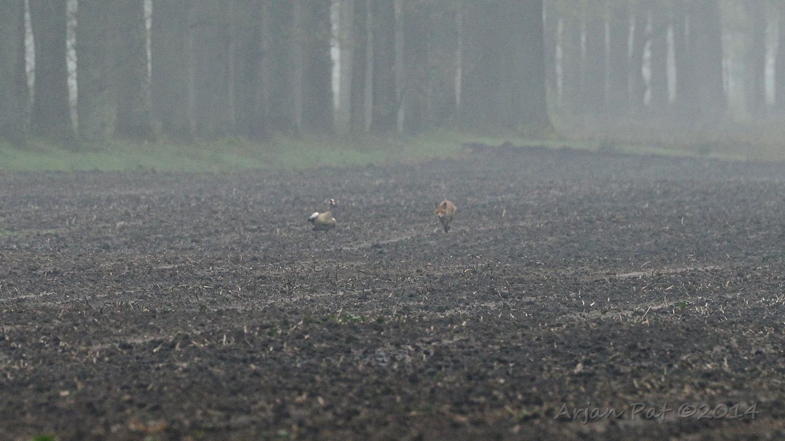 De gans vloog op en streek een metertje of 20 weer neer. De vos er toen weer achteraan en zo ging dat nog wel even door, tot ...