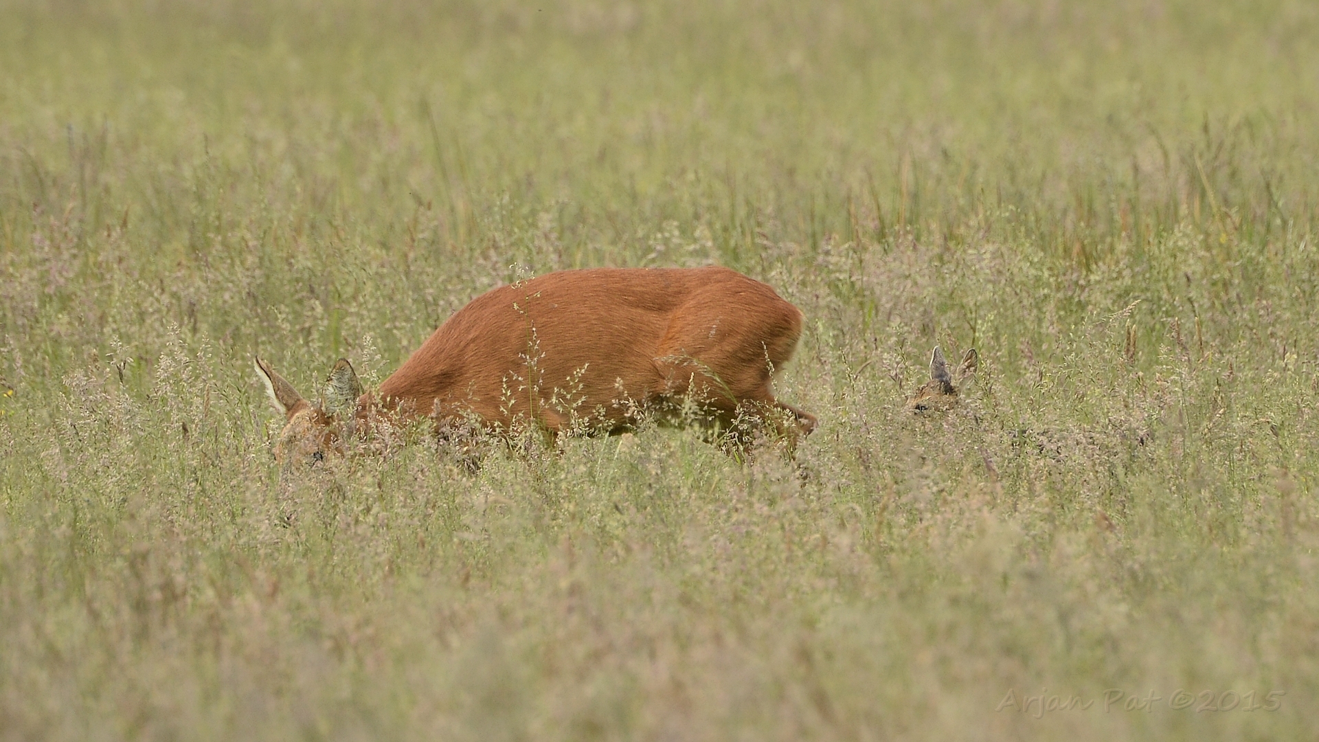 En daar verdwenen ze weer in het hoge gras.