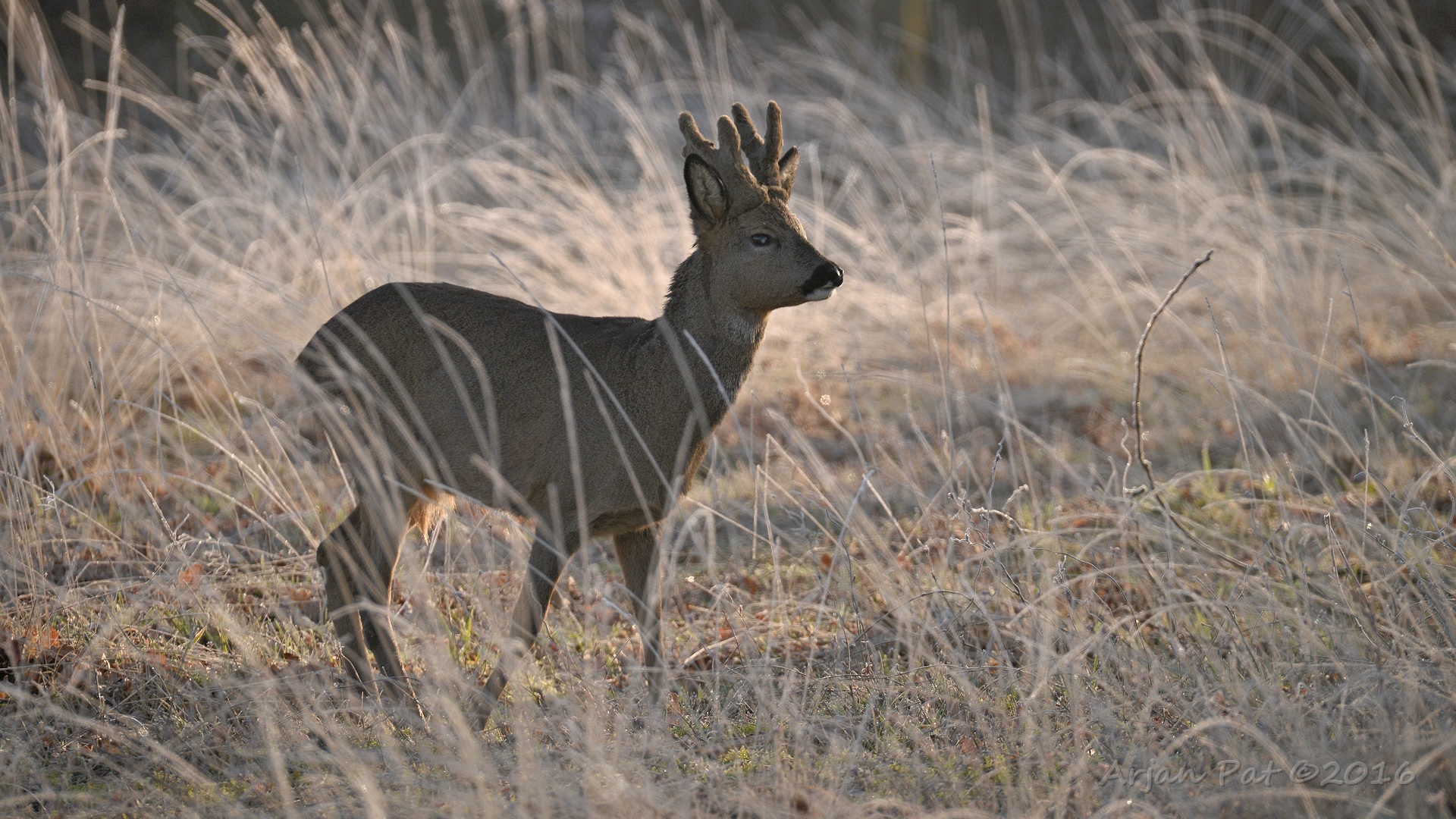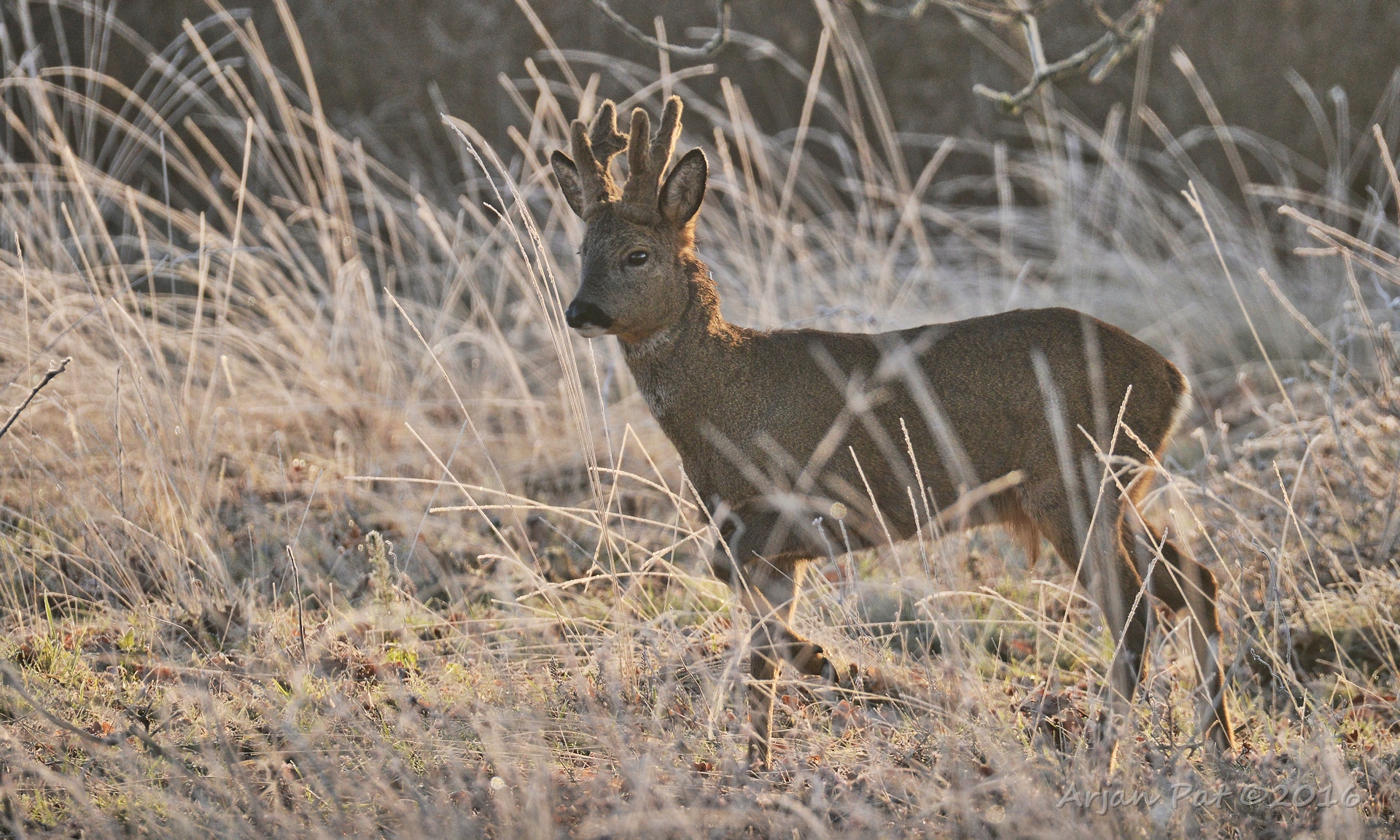 Reebok met gewei nog in de bast (begin maart)