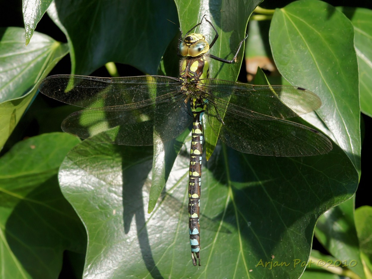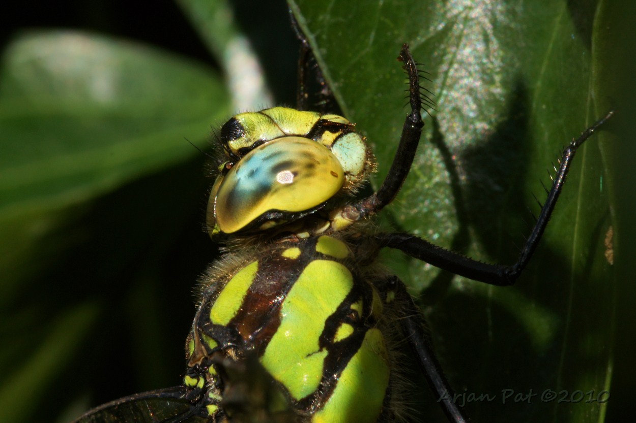 Blauwe glazenmaker (mannetje) met vloeistof resten van zijn laatste buit. Hij was een hele poos bezig om zichzelf schoon te poetsen.