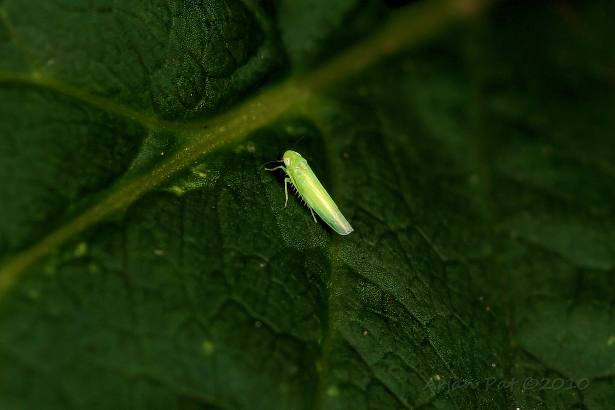 Met het blote oog lijkt het homogeen groen beestje, maar hij heeft een wittig markeringen op de vertex en pronotum. Ze worden (ten onrechte) soms aangezien als een "groene vlieg" (vliegende bladluizen).