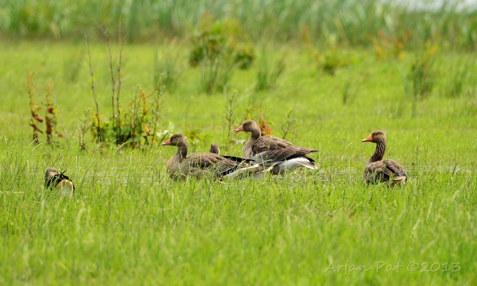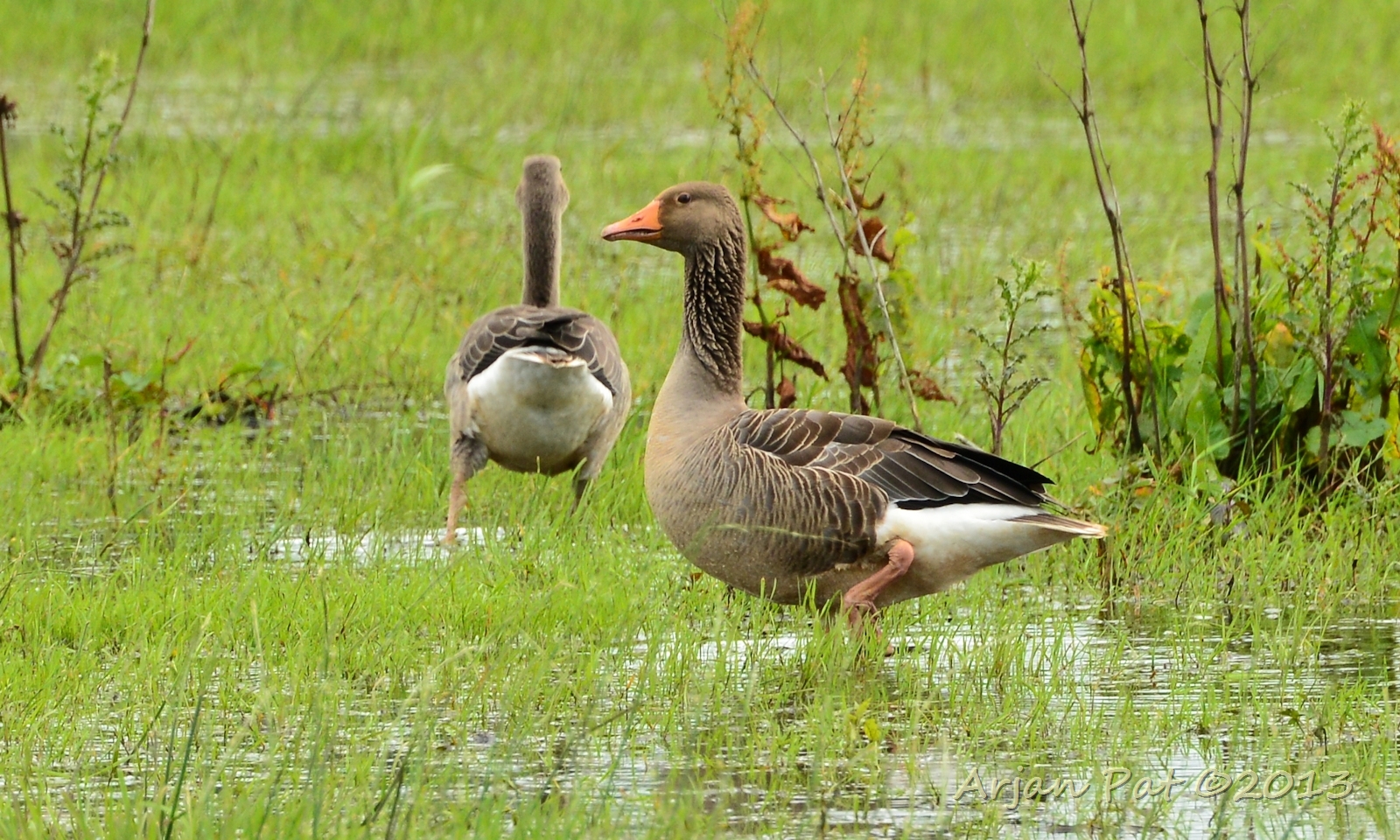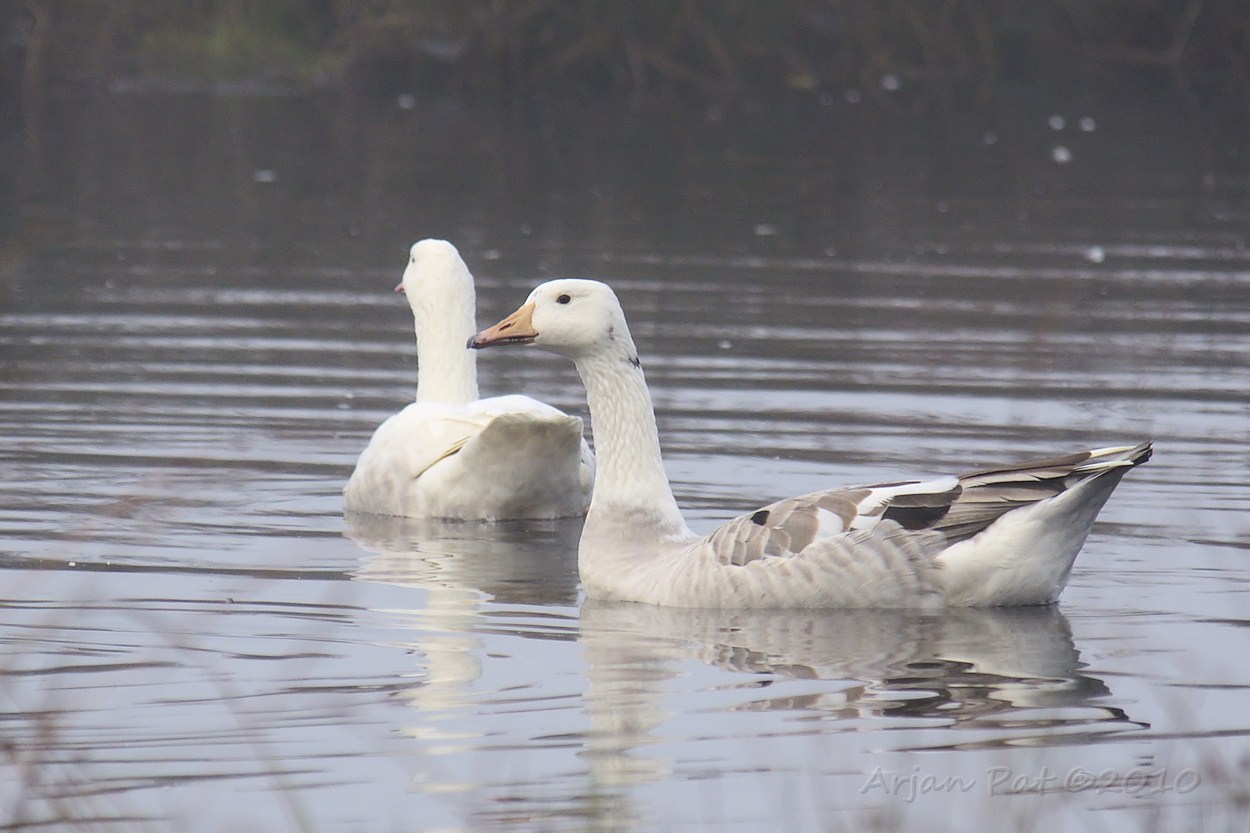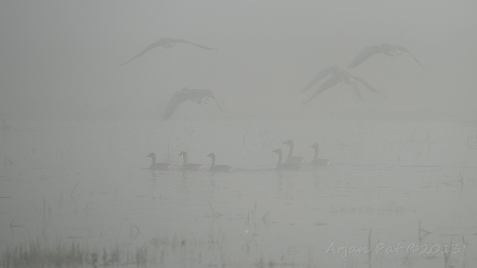 Zeer lichte grauwe ganzen in een mistig heidevennetje (Lheebroekerzand - 7 oktober 2010)