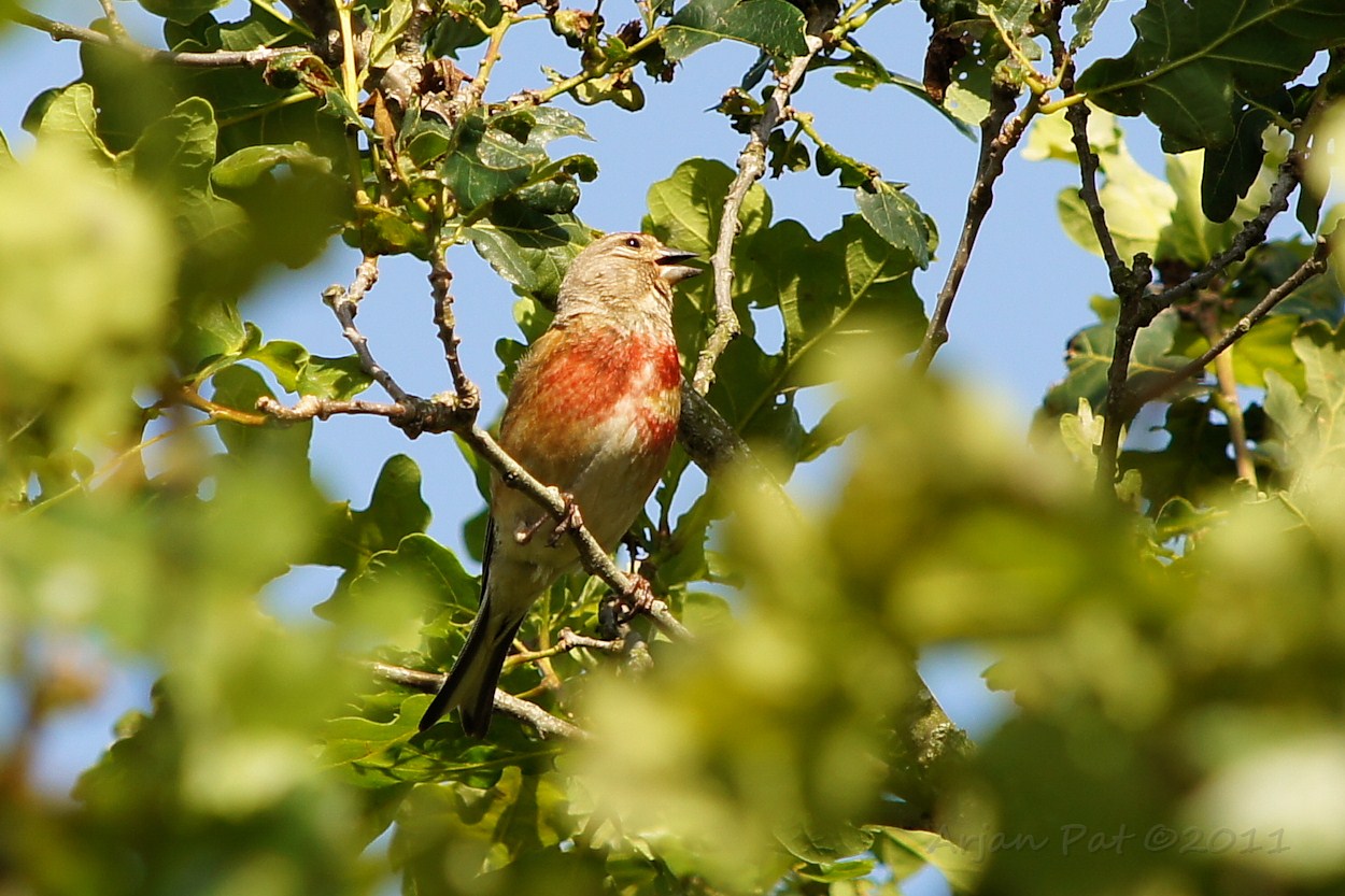 Mannetje in zomerkledij zingt het hoogste lied.