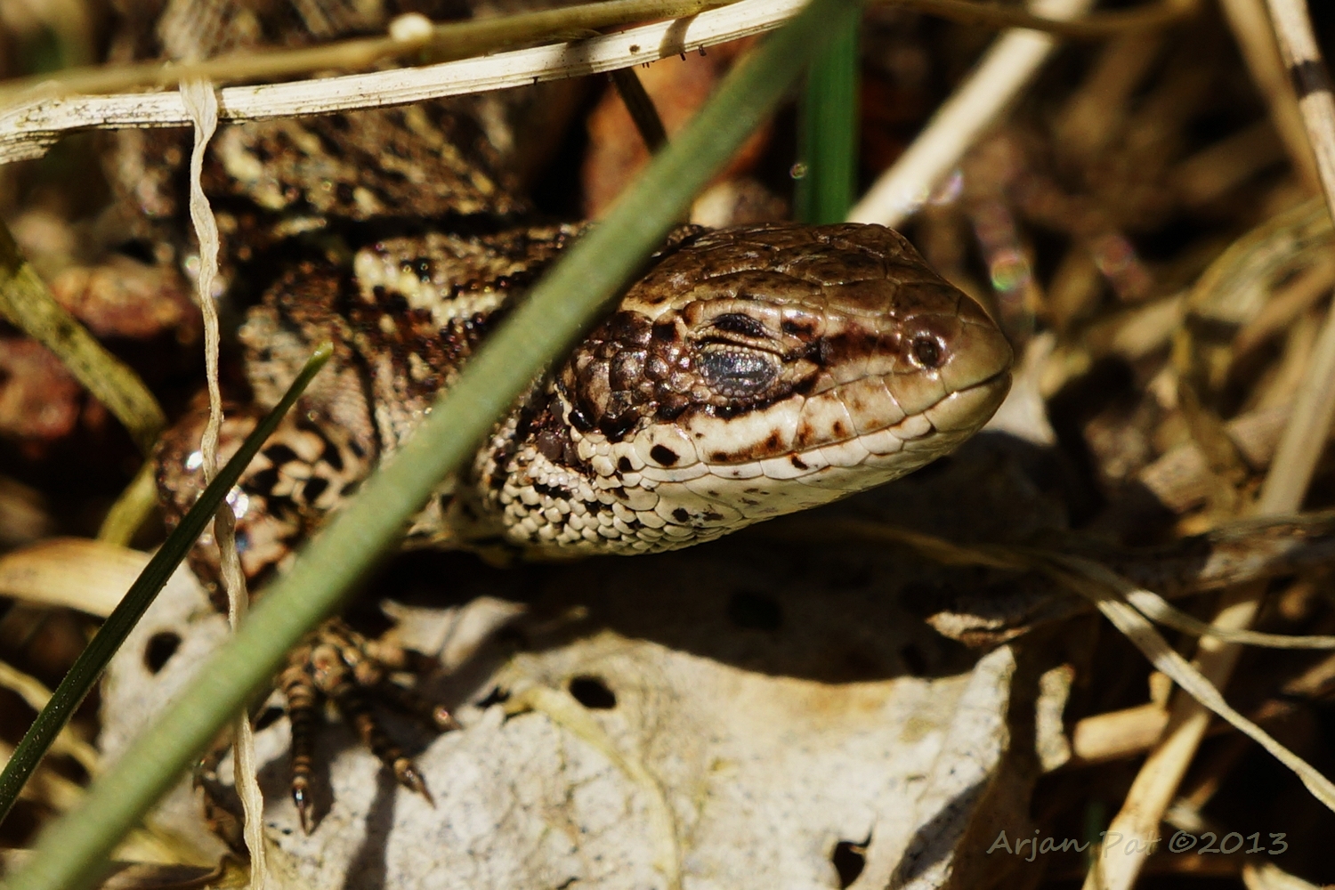 Deze hagedis mist een stuk van z'n staart. Zou die ternauwernood aan een adder ontsnapt zijn?
