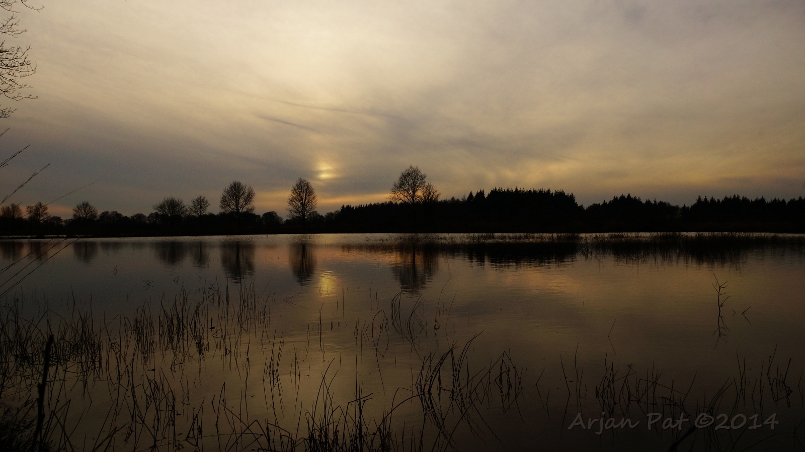 Ochtend- en avondwandeling met o.a. aparte, korte zonsopkomst, wilde(?) kat, paar foto's van het Hijkerveld, oude aardappelmeelfabriek van Oranje en zonsondergang.