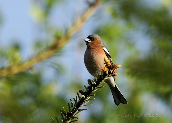 Het is net of deze vink zijn kleuren is kwijtgeraakt, of misschien nog moet krijgen.