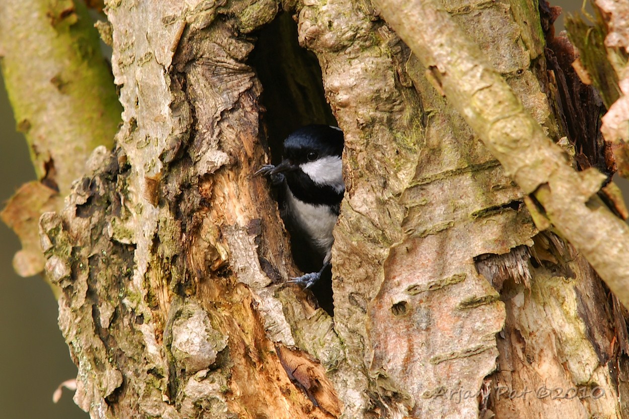 Deze Zwarte mees en in ieder geval nog eentje, volgden een stelletje Goudhaantjes op de voet (uh, poot).